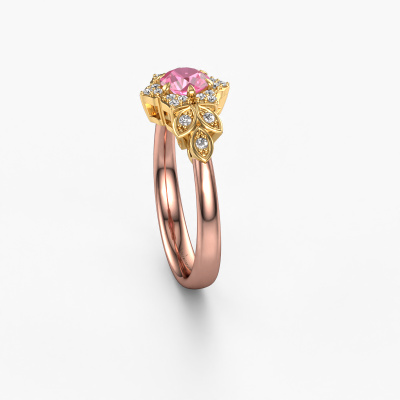 Deze verlovingsring heeft de naam Tatjana. Deze ring, uitgevoerd in 14 Carat rosé goud is gezet met 5 mm roze saffier. Een bijzondere rosé gouden vintage ring, deze unieke verlovingsring die jouw liefde van je leven zeker laat stralen! En dat is precies waar wij voor gaan. In deze vintage verlovingsring is prachtige roze saffier verwerkt. Je kunt natuurlijk iedere edelsteen die wij aanbieden hierin laten verwerken. De edelsteen is zorgvuldig geselecteerd, want wij vinden dat op jouw sierlijke verlovingsring alleen de mooiste edelsteen mag schitteren, toch? Onze goudsmid vervaardigt jouw verlovingsring in ons eigen atelier, en plaatst de roze saffier met uiterste precisie in de ring. Vervolgens wordt deze bijgewerkt en gepolijst totdat het resultaat zichtbaar is: de perfecte verlovingsring voor de liefde van jouw leven! Dit juweel wordt met passie en liefde gemaakt door één van onze meestergoudsmeden.Wist je dat we een beste prijs garantie geven voor jouw verlovingsring? Dit is mogelijk omdat al onze sieraden met de hand gemaakt worden in ons eigen atelier. We hebben geen dure voorraden, en we maken pas je verlovingsring op het moment dat je besteld hebt. Doordat we de hele productie zelf in de hand hebben, kunnen wij je goed informeren over alle eigenschappen van deze ring. Juist omdat het kopen van een verlovingsring online spannend is, begrijpen wij dat het fijn is om alle kenmerken te weten van jouw ring.Heb je zelf een specifieke verlovingsring ergens gezien, die je graag aan jouw geliefde zou willen geven? Bespreek gerust jouw ideeën met onze sieradenontwerpers, want wij zetten graag jouw ontwerp om tot een vintage verlovingsring. Je kunt tijdens het ontwerpproces steeds meekijken, omdat wij met 3D tekeningen werken. Je krijgt hierdoor al een realistische indruk van hoe jouw ontwerp er in werkelijkheid uit komt te zien. Daarbij kun je een dummy vooraf bestellen. Een dummy is een kunststof ring, die precies dezelfde vormen heeft als jouw uiteindelijke ontwerp. Je kunt deze passen en zien of de breedte en dikte bijvoorbeeld naar wens zijn. Wij sturen je graag een vrijblijvende offerte, waarbij je ongetwijfeld versteld zult staan over de prijs en de kwaliteit van de ring en edelstenen.Om het voor jou makkelijker te maken kun je ieder besteld sieraad binnen 30 dagen na aflevering eenvoudig weer retour sturen.
