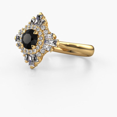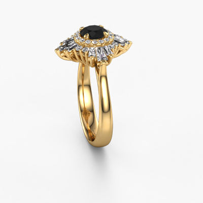 Deze verlovingsring heeft de naam Thalia. Deze ring, uitgevoerd in 14 Carat goud is gezet met 1.563 crt zwarte diamant. Een bijzondere gouden vintage ring, deze unieke verlovingsring die jouw liefde van je leven zeker laat stralen! En dat is precies waar wij voor gaan. In deze vintage verlovingsring is prachtige zwarte diamant verwerkt. Je kunt natuurlijk iedere edelsteen die wij aanbieden hierin laten verwerken. De edelsteen is zorgvuldig geselecteerd, want wij vinden dat op jouw bijzondere verlovingsring alleen de mooiste edelsteen mag schitteren, toch? Onze goudsmid vervaardigt jouw verlovingsring in ons eigen atelier, en plaatst de zwarte diamant met uiterste precisie in de ring. Vervolgens wordt deze bijgewerkt en gepolijst totdat het resultaat zichtbaar is: de perfecte verlovingsring voor de liefde van jouw leven! Dit juweel wordt met passie en liefde gemaakt door één van onze meestergoudsmeden.Wist je dat we een beste prijs garantie geven voor jouw verlovingsring? Dit is mogelijk omdat al onze sieraden met de hand gemaakt worden in ons eigen atelier. We hebben geen dure voorraden, en we maken pas je verlovingsring op het moment dat je besteld hebt. Doordat we de hele productie zelf in de hand hebben, kunnen wij je goed informeren over alle eigenschappen van deze ring. Juist omdat het kopen van een verlovingsring online spannend is, begrijpen wij dat het fijn is om alle kenmerken te weten van jouw ring.Heb je zelf een specifieke verlovingsring ergens gezien, die je graag aan jouw geliefde zou willen geven? Bespreek gerust jouw ideeën met onze sieradenontwerpers, want wij zetten graag jouw ontwerp om tot een vintage verlovingsring. Je kunt tijdens het ontwerpproces steeds meekijken, omdat wij met 3D tekeningen werken. Je krijgt hierdoor al een realistische indruk van hoe jouw ontwerp er in werkelijkheid uit komt te zien. Daarbij kun je een dummy vooraf bestellen. Een dummy is een kunststof ring, die precies dezelfde vormen heeft als jouw uiteindelijke ontwerp. Je kunt deze passen en zien of de breedte en dikte bijvoorbeeld naar wens zijn. Wij sturen je graag een vrijblijvende offerte, waarbij je ongetwijfeld versteld zult staan over de prijs en de kwaliteit van de ring en edelstenen.Om het voor jou makkelijker te maken kun je ieder besteld sieraad binnen 30 dagen na aflevering eenvoudig weer retour sturen.
