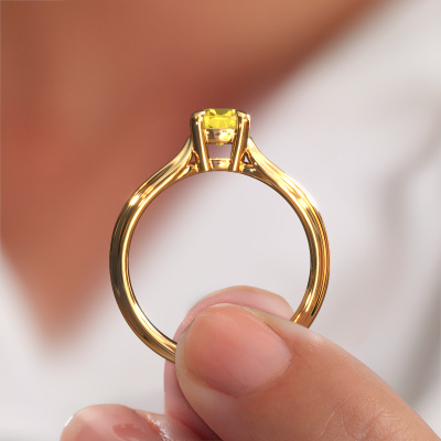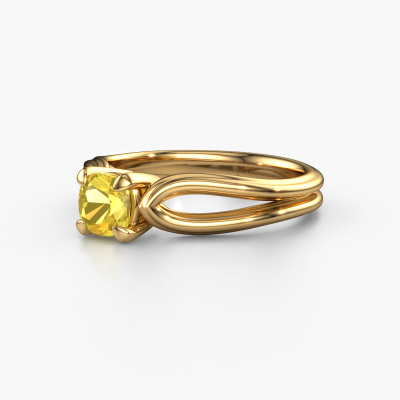 Bovenstaande verlovingsring heeft de naam Antonia cus 1, dit type verlovingsring noemen we een solitaire ring omdat hij een enkele edelsteen bevat. De verlovingsring is uitgevoerd in 14 Carat goud en heeft een cushion gele saffier ter grootte van 5 mm. Het leuke van onze configurator is dat je zelf je juweel kunt samenstellen tot een eigen persoonlijk juweel. Deze solitaire ring is uitgevoerd in de edelmetaal combinatie goud met goud, maar u kunt dus ook uit andere kleuren kiezen. Ieder juweel is gemaakt door een team van gedreven goudsmeden en designers. Hierdoor zal dit unieke pronkstuk een echte eyecatcher zijn.De solitaire verlovingsring is een bijzondere verlovingsring. Juist doordat de chatonzetting open is, creëert de lichtinval een schitterend effect op de edelsteen. Omdat de gekozen edelsteen hoog op de verlovingsring geplaatst wordt, wordt deze fantasie verlovingsring een prachtige eyecatcher. Met veel zorgvuldigheid vervaardigen wij alle details in deze solitaire verlovingsring met de hand, zodat jij binnenkort je aanzoek kunt bekronen met een unieke ring, speciaal voor de liefde van jouw leven!Wellicht is het je opgevallen dat onze prijzen gemiddeld 30% lager liggen dan bij een andere juwelier. En dat terwijl de kwaliteit in de meeste gevallen nog beter is! Dit komt doordat onze goudsmeden je verlovingsring direct in ons eigen atelier vervaardigen. Hierdoor hoeven we geen dure voorraden te hanteren en kunnen we ieder gewenst detail direct op jouw verlovingsring aanbrengen.Ons team is iedere dag weer bezig om nieuwe ontwerpen toe te voegen, in samenwerking met onze designers en goudsmeden wordt gekeken hoe we tot het mooiste ontwerp kunnen komen. Wij doen ons best om tot een zo gevarieerd mogelijk aanbod te komen. Wellicht heb je zelf al een mooi idee van een sieraad dat je ooit wel eens gezien hebt. Neem dan eens vrijblijvend contact met ons op. Wij maken een offerte voor je op waarbij wij vrij zeker zijn dat we wat betreft kwaliteit en prijs jou versteld zullen laten staan.Om het voor jou makkelijker te maken kun je ieder besteld sieraad binnen 30 dagen na aflevering eenvoudig weer retour sturen.