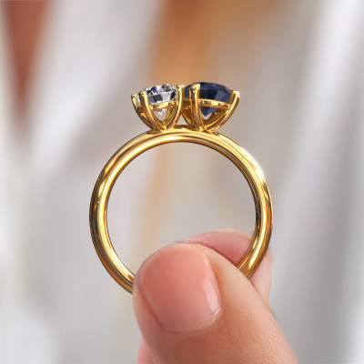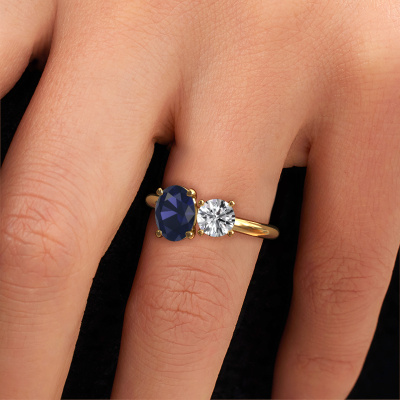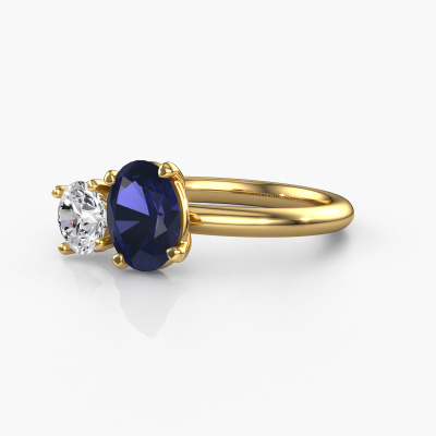 Deze verlovingsring heeft de naam Toi et Moi OVL-RND. Deze ring, uitgevoerd in 14 Carat goud is gezet met saffier. Ben je op zoek naar een unieke gouden verlovingsring met een chique uitstraling? Dan is dit een mooie ring, die je zelf naar jouw of