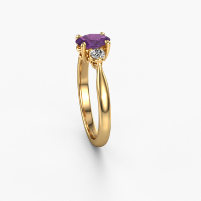 Deze verlovingsring heeft de naam Lieselot OVL. Deze ring, uitgevoerd in 14 Carat goud is gezet met amethist. Ben je op zoek naar een unieke gouden verlovingsring met een eigentijdse uitstraling? Dan is dit een mooie ring, die je zelf naar jouw of haar smaak verder kunt aanpassen. In deze eigentijdse verlovingsring is prachtige amethist verwerkt. Deze is zorgvuldig geselecteerd, want op jouw gracieuze verlovingsring mag alleen de mooiste edelsteen schitteren. Onze goudsmid vervaardigt jouw verlovingsring in ons eigen atelier, en plaatst de amethist met uiterste precisie in de ring. Vervolgens wordt deze bijgewerkt en gepolijst totdat het resultaat zichtbaar is: de perfecte verlovingsring voor de liefde van jouw leven!Door het gebruik van de modernste technieken, gecombineerd met ambachtelijk vakmanschap kunnen wij alle verlovingsringen zelf in ons atelier maken. Ieder sieraad wordt pas gemaakt nadat deze besteld is. Dit heeft als bijkomend voordeel dat we kunnen leveren tegen een prijs die je nergens anders tegenkomt.Ons team is iedere dag weer bezig om nieuwe ontwerpen toe te voegen, in samenwerking met onze designers en goudsmeden wordt gekeken hoe we tot het mooiste ontwerp kunnen komen. Wij doen ons best om tot een zo gevarieerd mogelijk aanbod te komen. Wellicht heb je zelf al een mooi idee van een sieraad dat je ooit wel eens gezien hebt. Neem dan eens vrijblijvend contact met ons op. Wij maken een offerte voor je op waarbij wij vrij zeker zijn dat we wat betreft kwaliteit en prijs jou versteld zullen laten staan.Om het voor jou makkelijker te maken kun je ieder besteld sieraad binnen 30 dagen na aflevering eenvoudig weer retour sturen.