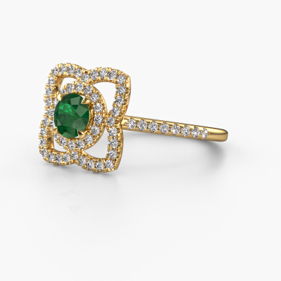 Deze verlovingsring heeft de naam Cleopatra. Deze verlovingsring uitgevoerd in 14 Carat goud is gezet met smaragd. Een bijzondere gouden vintage ring, deze unieke verlovingsring die jouw liefde van je leven zeker laat stralen! En dat is precies waar wij voor gaan. In deze vintage verlovingsring zijn prachtige smaragd verwerkt. Je kunt natuurlijk iedere edelsteen die wij aanbieden hierin laten verwerken. De edelsteen is zorgvuldig geselecteerd, want wij vinden dat op jouw verlovingsring alleen de mooiste edelsteen mag schitteren, toch? Onze goudsmid vervaardigt jouw verlovingsring in ons eigen atelier, en plaatst de smaragd met uiterste precisie in de ring. Vervolgens wordt deze bijgewerkt en gepolijst totdat het resultaat zichtbaar is: de perfecte verlovingsring voor de liefde van jouw leven! Dit juweel is speciaal voor jou gemaakt, met aandacht voor detail en design.Wist je dat we een beste prijs garantie geven voor jouw verlovingsring? Dit is mogelijk omdat al onze sieraden met de hand gemaakt worden in ons eigen atelier. We hebben geen dure voorraden, en we maken pas je verlovingsring op het moment dat je besteld hebt. Doordat we de hele productie zelf in de hand hebben, kunnen wij je goed informeren over alle eigenschappen van deze ring. Juist omdat het kopen van een verlovingsring online spannend is, begrijpen wij dat het fijn is om alle kenmerken te weten van jouw ring.Heb je zelf een specifieke verlovingsring ergens gezien, die je graag aan jouw geliefde zou willen geven? Bespreek gerust jouw ideeën met onze sieradenontwerpers, want wij zetten graag jouw ontwerp om tot een vintage verlovingsring. Je kunt tijdens het ontwerpproces steeds meekijken, omdat wij met 3D tekeningen werken. Je krijgt hierdoor al een realistische indruk van hoe jouw ontwerp er in werkelijkheid uit komt te zien. Daarbij kun je een dummy vooraf bestellen. Een dummy is een kunststof ring, die precies dezelfde vormen heeft als jouw uiteindelijke ontwerp. Je kunt deze passen en zien of de breedte en dikte bijvoorbeeld naar wens zijn. Wij sturen je graag een vrijblijvende offerte, waarbij je ongetwijfeld versteld zult staan over de prijs en de kwaliteit van de ring en edelstenen.Om het voor jou makkelijker te maken kun je ieder besteld sieraad binnen 30 dagen na aflevering eenvoudig weer retour sturen.