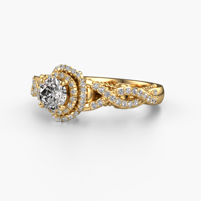 Bovenstaande verlovingsring heeft de naam Leora. Dit type verlovingsring noemen we een halo ring. De verlovingsring is uitgevoerd in 14 Carat goud en heeft als middensteen een ronde diamant ter grootte van 0.50 crt en eromheen zijn kleine lab-grown diamanten gezet. Het bijzondere van deze vintage gouden halo verlovingsring zijn de kleinere edelstenen die rondom de grote diamant zijn gezet. Dat is ook waar deze mooie verlovingsring zijn naam door heeft gekregen: halo betekent lichtkrans en dat is ook waar de kleinere edelstenen voor zorgen. Deze kleinere edelstenen moeten dan echter wel allen op dezelfde manier geplaatst zijn, zodat het licht niet doorbroken wordt in de diamant en er inderdaad een prachtige lichtkrans gecreëerd wordt. En daar zorgen onze meestergoudsmeden voor. Met uiterste precisie wordt iedere zorgvuldig geselecteerde diamant met de hand in de verlovingsring geplaatst. Steeds opnieuw wordt de verlovingsring tegen het licht gehouden om te zien of het speciale effect nog steeds zichtbaar is. Het resultaat is een unieke verlovingsring, waarbij de gekozen diamant letterlijk het stralende middelpunt wordt. Je kunt je voorstellen dat deze verlovingsring werkelijk een betekenisvolle verlovingsring is om aan jouw liefde voor het leven te schenken! Op de dag dat jij laat zien dat zij jouw stralende middelpunt is!Door onze modernste technieken kunnen wij met uiterste precisie prachtige sieraden te ontwerpen en voor jou personaliseren in de hoogste juwelierskwaliteit. Tegelijkertijd zijn onze verlovingsringen altijd 30% goedkoper dan bij een andere juwelier. Dit komt doordat alle verlovingsringen pas vervaardigd worden op het moment dat deze besteld wordt en we daardoor geen dure voorraden hoeven te hanteren. Mocht je aan een bepaald budget gebonden zijn, kunnen we je graag adviseren welke combinatie je het beste kunt kiezen.Iedere dag is ons team van goudsmeden en sieradenontwerpers aan het werk om nieuwe sieraden te creëren. Het kan zijn dat je ergens een vintage verlovingsring gezien hebt, die je als basis wilt nemen bij het ontwerpen van jouw unieke ring. Neem gerust contact met ons op en we zullen je een aanbod doen, waar je vrijwel zeker verwonderd zult zijn over de kwaliteit en de prijs.Om het voor jou makkelijker te maken kun je ieder besteld sieraad binnen 30 dagen na aflevering eenvoudig weer retour sturen.