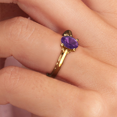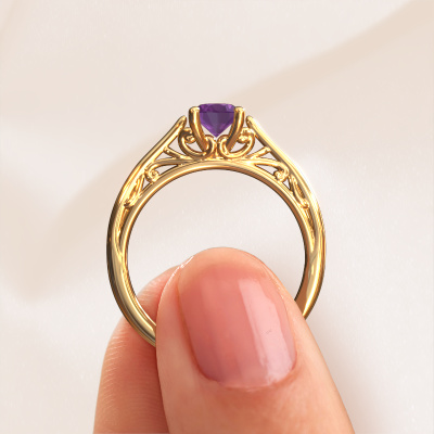 Deze aanzoeksring heeft de naam Shannon ovl. Deze aanzoeksring uitgevoerd in 14 Carat goud is gezet met amethist. Een bijzondere gouden vintage ring, deze unieke aanzoeksring die jouw liefde van je leven zeker laat stralen! En dat is precies waar wij voor gaan. In deze Keltische aanzoeksring zijn prachtige amethisten verwerkt. Je kunt natuurlijk iedere edelsteen die wij aanbieden hierin laten verwerken. De edelsteen is zorgvuldig geselecteerd, want wij vinden dat op jouw aanzoeksring alleen de mooiste edelsteen mag schitteren, toch? Onze goudsmid vervaardigt jouw aanzoeksring in ons eigen atelier, en plaatst de amethist met uiterste precisie in de ring. Vervolgens wordt deze bijgewerkt en gepolijst totdat het resultaat zichtbaar is: de perfecte aanzoeksring voor de liefde van jouw leven! Dit juweel is gemaakt door een team van gedreven goudsmeden en designers. Hierdoor zal dit unieke pronkstuk een echte eyecatcher zijn.Onze goudsmeden vervaardigen pas je Shannon ovl aanzoeksring, zodra je deze besteld hebt. We hebben geen voorraden. Het voordeel hiervan is dat we de voorraad niet door hoeven te berekenen in de prijs, en kunnen daardoor sieraden leveren tegen een bijzonder lage prijs.Ons team is iedere dag weer bezig om nieuwe ontwerpen toe te voegen, in samenwerking met onze designers en goudsmeden wordt gekeken hoe we tot het mooiste ontwerp kunnen komen. Wij doen ons best om tot een zo gevarieerd mogelijk aanbod te komen. Wellicht heb je zelf al een mooi idee van een sieraad dat je ooit wel eens gezien hebt. Neem dan eens vrijblijvend contact met ons op. Wij maken een offerte voor je op waarbij wij vrij zeker zijn dat we wat betreft kwaliteit en prijs jou versteld zullen laten staan.Om het voor jou makkelijker te maken kun je ieder besteld sieraad binnen 30 dagen na aflevering eenvoudig weer retour sturen.