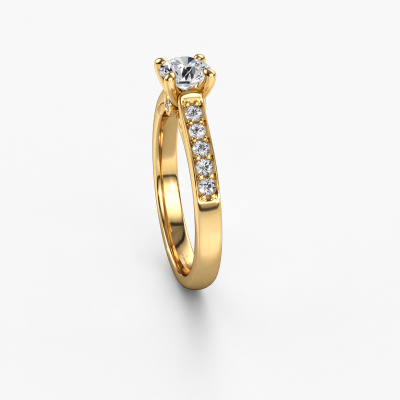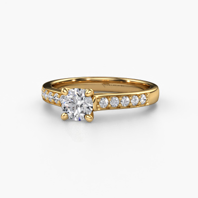 Bovenstaande verlovingsring heeft de naam Valorie RND 2. Dit type verlovingsring noemen we een pavé solitaire verlovingsring omdat hij een enkele middensteen heeft waarbij de banden van de verlovingsring ook volgezet zijn. De verlovingsring is uitgevoerd in de combinatie 14 Carat goud met goud en heeft als middensteen een ronde lab-grown diamant ter grootte van 0.60 crt en in de zijbanden zijn lab-grown diamanten gezet. Ieder juweel is speciaal voor jou gemaakt, met aandacht voor detail en design.Deze moderne gouden pavé solitaire verlovingsring heeft een schitterende ronde lab-grown diamant als centersteen, waarbij in de band nog meer lab-grown diamanten zijn gezet om de middensteen nog meer te accentueren. Doordat de zetting van de pootjes om de lab-grown diamant open is, vangt de lab-grown diamant het licht van alle kanten op en schittert hierdoor optimaal. Hierboven kun je zien hoe onze goudsmid de verlovingsring heel precies tot in de kleinste details heeft bewerkt, zodat de wat hoger gelegen lab-grown diamant een echte eyecatcher is. Wat een prachtige verlovingsring om te geven bij je aanzoek aan de liefde van jouw leven, aan jouw stralende middelpunt!Door onze modernste technieken kunnen wij met uiterste precisie prachtige sieraden te ontwerpen en voor jou personaliseren in de hoogste juwelierskwaliteit. Tegelijkertijd zijn onze verlovingsringen altijd 30% goedkoper dan bij een andere juwelier. Dit komt doordat alle verlovingsringen pas vervaardigd worden op het moment dat deze besteld wordt en we daardoor geen dure voorraden hoeven te hanteren. Mocht je aan een bepaald budget gebonden zijn, kunnen we je graag adviseren welke combinatie je het beste kunt kiezen.Iedere dag is ons team van goudsmeden en sieradenontwerpers aan het werk om nieuwe sieraden te creëren. Het kan zijn dat je ergens een moderne verlovingsring gezien hebt, die je als basis wilt nemen bij het ontwerpen van jouw unieke ring. Neem gerust contact met ons op en we zullen je een aanbod doen, waar je vrijwel zeker verwonderd zult zijn over de kwaliteit en de prijs.Om het voor jou makkelijker te maken kun je ieder besteld sieraad binnen 30 dagen na aflevering eenvoudig weer retour sturen.
