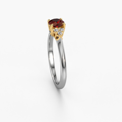 Deze verlovingsring heeft de naam Felipa RND. Deze verlovingsring uitgevoerd in 14 Carat witgoud is gezet met 5 mm granaat. Wat maakt jullie relatie uniek? Wat is het, dat jij haar wilt gaan vragen om jouw vrouw te worden? Die unieke band die jullie samen hebben, kun je laten weerspiegelen in een unieke ring. Een unieke 3 steens verlovingsring die alleen voor haar vervaardigd is. En daarom past deze fantasie verlovingsring heel mooi bij haar. Ieder detail van deze opengewerkte witgouden verlovingsring met granaat wordt met de hand samengesteld, bijgewerkt en gepolijst door onze goudsmid in het atelier beneden. Een prachtige verlovingsring is het uiteindelijk resultaat, uniek en perfect gesmeed tot in de kleinste details! Dat is waar onze goudsmeden absoluut voor gaan! Dit juweel wordt speciaal voor jou gemaakt door onze meester goudsmeden in ons eigen atelier.Wist je dat we een beste prijs garantie geven voor jouw verlovingsring? Dit is mogelijk omdat al onze sieraden met de hand gemaakt worden in ons eigen atelier. We hebben geen dure voorraden, en we maken pas je verlovingsring op het moment dat je besteld hebt. Doordat we de hele productie zelf in de hand hebben, kunnen wij je goed informeren over alle eigenschappen van deze ring. Juist omdat het kopen van een verlovingsring online spannend is, begrijpen wij dat het fijn is om alle kenmerken te weten van jouw ring.Heb je zelf een specifieke verlovingsring ergens gezien, die je graag aan jouw geliefde zou willen geven? Bespreek gerust jouw ideeën met onze sieradenontwerpers, want wij zetten graag jouw ontwerp om tot een fantasie verlovingsring. Je kunt tijdens het ontwerpproces steeds meekijken, omdat wij met 3D tekeningen werken. Je krijgt hierdoor al een realistische indruk van hoe jouw ontwerp er in werkelijkheid uit komt te zien. Daarbij kun je een dummy vooraf bestellen. Een dummy is een kunststof ring, die precies dezelfde vormen heeft als jouw uiteindelijke ontwerp. Je kunt deze passen en zien of de breedte en dikte bijvoorbeeld naar wens zijn. Wij sturen je graag een vrijblijvende offerte, waarbij je ongetwijfeld versteld zult staan over de prijs en de kwaliteit van de ring en edelstenen.Om het voor jou makkelijker te maken kun je ieder besteld sieraad binnen 30 dagen na aflevering eenvoudig weer retour sturen.