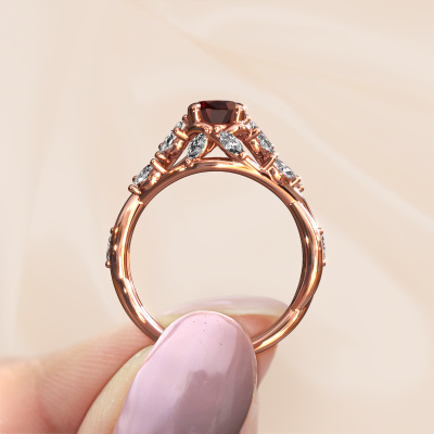 Deze verlovingsring heeft de naam Samantha OVL. Deze verlovingsring uitgevoerd in 14 Carat rosé goud is gezet met 7,5x5,5 mm granaat. Wat maakt jullie relatie uniek? Wat is het, dat jij haar wilt gaan vragen om jouw vrouw te worden? Die unieke band die jullie samen hebben, kun je laten weerspiegelen in een unieke ring. Een unieke pavé solitaire verlovingsring die alleen voor haar vervaardigd is. En daarom past deze unieke verlovingsring heel mooi bij haar. Ieder detail van deze bijzondere rosé gouden verlovingsring met granaat wordt met de hand samengesteld, bijgewerkt en gepolijst door onze goudsmid in het atelier beneden. Een prachtige verlovingsring is het uiteindelijk resultaat, uniek en perfect gesmeed tot in de kleinste details! Dat is waar onze goudsmeden absoluut voor gaan! Dit juweel wordt speciaal voor jou gemaakt door onze meester goudsmeden in ons eigen atelier.Wist je dat we een beste prijs garantie geven voor jouw verlovingsring? Dit is mogelijk omdat al onze sieraden met de hand gemaakt worden in ons eigen atelier. We hebben geen dure voorraden, en we maken pas je verlovingsring op het moment dat je besteld hebt. Doordat we de hele productie zelf in de hand hebben, kunnen wij je goed informeren over alle eigenschappen van deze ring. Juist omdat het kopen van een verlovingsring online spannend is, begrijpen wij dat het fijn is om alle kenmerken te weten van jouw ring.Ons team is iedere dag weer bezig om nieuwe ontwerpen toe te voegen, in samenwerking met onze designers en goudsmeden wordt gekeken hoe we tot het mooiste ontwerp kunnen komen. Wij doen ons best om tot een zo gevarieerd mogelijk aanbod te komen. Wellicht heb je zelf al een mooi idee van een sieraad dat je ooit wel eens gezien hebt. Neem dan eens vrijblijvend contact met ons op. Wij maken een offerte voor je op waarbij wij vrij zeker zijn dat we wat betreft kwaliteit en prijs jou versteld zullen laten staan.Om het voor jou makkelijker te maken kun je ieder besteld sieraad binnen 30 dagen na aflevering eenvoudig weer retour sturen.