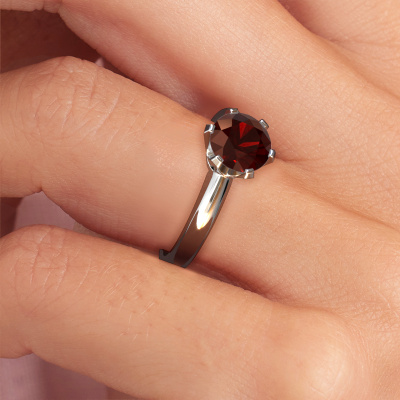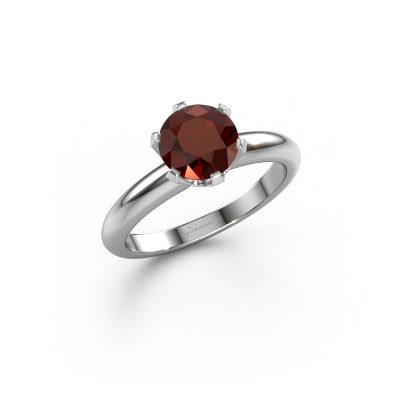 Bovenstaande verlovingsring heeft de naam Tiffy 1, dit type verlovingsring noemen we een solitaire ring omdat hij een enkele edelsteen bevat. De verlovingsring is uitgevoerd in platina en heeft een ronde granaat ter grootte van 7 mm. Het leuke van onze configurator is dat je zelf je juweel kunt samenstellen tot een eigen persoonlijk juweel. Deze solitaire ring is uitgevoerd in de edelmetaal combinatie platina met platina, maar u kunt dus ook uit andere kleuren kiezen. Ieder juweel is speciaal voor jou gemaakt, met aandacht voor detail en design.De solitaire verlovingsring is een bijzondere verlovingsring. Juist doordat de chatonzetting open is, creëert de lichtinval een schitterend effect op de edelsteen. Omdat de gekozen edelsteen hoog op de verlovingsring geplaatst wordt, wordt deze klassieke verlovingsring een prachtige eyecatcher. Met veel zorgvuldigheid vervaardigen wij alle details in deze solitaire verlovingsring met de hand, zodat jij binnenkort je aanzoek kunt bekronen met een unieke ring, speciaal voor de liefde van jouw leven!Door onze modernste technieken kunnen wij met uiterste precisie prachtige sieraden te ontwerpen en voor jou personaliseren in de hoogste juwelierskwaliteit. Tegelijkertijd zijn onze verlovingsringen altijd 30% goedkoper dan bij een andere juwelier. Dit komt doordat alle verlovingsringen pas vervaardigd worden op het moment dat deze besteld wordt en we daardoor geen dure voorraden hoeven te hanteren. Mocht je aan een bepaald budget gebonden zijn, kunnen we je graag adviseren welke combinatie je het beste kunt kiezen.Iedere dag is ons team van goudsmeden en sieradenontwerpers aan het werk om nieuwe sieraden te creëren. Het kan zijn dat je ergens een klassieke verlovingsring gezien hebt, die je als basis wilt nemen bij het ontwerpen van jouw unieke ring. Neem gerust contact met ons op en we zullen je een aanbod doen, waar je vrijwel zeker verwonderd zult zijn over de kwaliteit en de prijs.Om het voor jou makkelijker te maken kun je ieder besteld sieraad binnen 30 dagen na aflevering eenvoudig weer retour sturen.