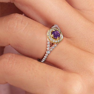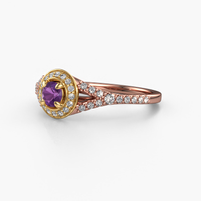 Deze verlovingsring heeft de naam Pamela RND. Deze opengewerkte verlovingsring uitgevoerd, in 14 Carat rosé goud is gezet met 4 mm amethist. Deze exclusieve rosé gouden halo verlovingsring is een puur staaltje vakmanschap! Alle kleine details zijn door onze goudsmid met veel geduld en passie vervaardigd. Dit ambacht vraagt een deskundig oog en vaardige hand om deze verlovingsring met uiterste precisie samen te stellen. En dat is precies waar onze goudsmeden enthousiast van worden! De prachtige amethisten zijn op een bijzondere manier gezet, zodat deze nog beter tot zijn recht komen. Dit geeft de verlovingsring extra allure. De verlovingsring is al uniek door zijn natuurlijke edelsteen, die we speciaal geselecteerd hebben voor deze ring. Daarnaast kun je zelf de samenstelling kiezen van het edelmetaal, waardoor je uiteindelijk een unieke verlovingsring hebt gecreëerd voor de meest exclusieve vrouw in je leven! Dit juweel is uniek, doordat je deze ring geheel naar eigen wensen kunt samenstellen.Omdat wij zelf alle verlovingsring maken en direct aan jou leveren kunnen wij je een verlovingsring leveren tegen een prijs die je nergens anders zult tegenkomen. Een ring wordt pas gemaakt als we een bestelling krijgen, hierdoor hebben wij geen dure voorraden en kunnen wij je de beste prijs garanderen. Wij begrijpen dat het kopen van een verlovingsring online spannend is en willen daarom je zoveel mogelijk informeren over alle specifieke eigenschappen van de ring die jij koopt.Ons team is iedere dag weer bezig om nieuwe ontwerpen toe te voegen, in samenwerking met onze designers en goudsmeden wordt gekeken hoe we tot het mooiste ontwerp kunnen komen. Wij doen ons best om tot een zo gevarieerd mogelijk aanbod te komen. Wellicht heb je zelf al een mooi idee van een sieraad dat je ooit wel eens gezien hebt. Neem dan eens vrijblijvend contact met ons op. Wij maken een offerte voor je op waarbij wij vrij zeker zijn dat we wat betreft kwaliteit en prijs jou versteld zullen laten staan.Om het voor jou makkelijker te maken kun je ieder besteld sieraad binnen 30 dagen na aflevering eenvoudig weer retour sturen.