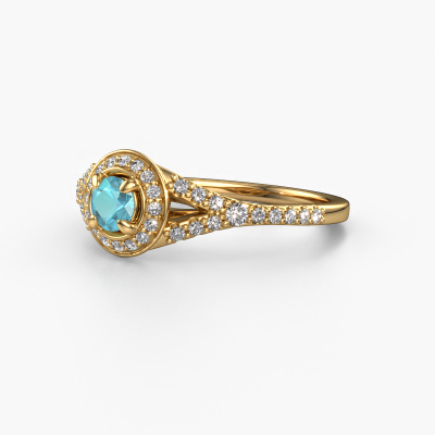 Deze verlovingsring heeft de naam Pamela RND. Deze opengewerkte verlovingsring uitgevoerd, in 14 Carat goud is gezet met 4 mm blauw topaas. Deze exclusieve gouden halo verlovingsring is een puur staaltje vakmanschap! Alle kleine details zijn door onze goudsmid met veel geduld en passie vervaardigd. Dit ambacht vraagt een deskundig oog en vaardige hand om deze verlovingsring met uiterste precisie samen te stellen. En dat is precies waar onze goudsmeden enthousiast van worden! De prachtige blauw topaas zijn op een bijzondere manier gezet, zodat deze nog beter tot zijn recht komen. Dit geeft de verlovingsring extra allure. De verlovingsring is al uniek door zijn natuurlijke edelsteen, die we speciaal geselecteerd hebben voor deze ring. Daarnaast kun je zelf de samenstelling kiezen van het edelmetaal, waardoor je uiteindelijk een unieke verlovingsring hebt gecreëerd voor de meest exclusieve vrouw in je leven! Dit juweel is uniek, doordat je deze ring geheel naar eigen wensen kunt samenstellen.Omdat wij zelf alle verlovingsring maken en direct aan jou leveren kunnen wij je een verlovingsring leveren tegen een prijs die je nergens anders zult tegenkomen. Een ring wordt pas gemaakt als we een bestelling krijgen, hierdoor hebben wij geen dure voorraden en kunnen wij je de beste prijs garanderen. Wij begrijpen dat het kopen van een verlovingsring online spannend is en willen daarom je zoveel mogelijk informeren over alle specifieke eigenschappen van de ring die jij koopt.Ons team is iedere dag weer bezig om nieuwe ontwerpen toe te voegen, in samenwerking met onze designers en goudsmeden wordt gekeken hoe we tot het mooiste ontwerp kunnen komen. Wij doen ons best om tot een zo gevarieerd mogelijk aanbod te komen. Wellicht heb je zelf al een mooi idee van een sieraad dat je ooit wel eens gezien hebt. Neem dan eens vrijblijvend contact met ons op. Wij maken een offerte voor je op waarbij wij vrij zeker zijn dat we wat betreft kwaliteit en prijs jou versteld zullen laten staan.Om het voor jou makkelijker te maken kun je ieder besteld sieraad binnen 30 dagen na aflevering eenvoudig weer retour sturen.