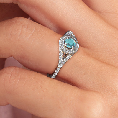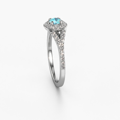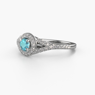 Deze verlovingsring heeft de naam Pamela RND. Deze opengewerkte verlovingsring uitgevoerd, in platina is gezet met 4 mm blauw topaas. Deze exclusieve platina halo verlovingsring is een puur staaltje vakmanschap! Alle kleine details zijn door onze goudsmid met veel geduld en passie vervaardigd. Dit ambacht vraagt een deskundig oog en vaardige hand om deze verlovingsring met uiterste precisie samen te stellen. En dat is precies waar onze goudsmeden enthousiast van worden! De prachtige blauw topaas zijn op een bijzondere manier gezet, zodat deze nog beter tot zijn recht komen. Dit geeft de verlovingsring extra allure. De verlovingsring is al uniek door zijn natuurlijke edelsteen, die we speciaal geselecteerd hebben voor deze ring. Daarnaast kun je zelf de samenstelling kiezen van het edelmetaal, waardoor je uiteindelijk een unieke verlovingsring hebt gecreëerd voor de meest exclusieve vrouw in je leven! Dit juweel is uniek, doordat je deze ring geheel naar eigen wensen kunt samenstellen.Omdat wij zelf alle verlovingsring maken en direct aan jou leveren kunnen wij je een verlovingsring leveren tegen een prijs die je nergens anders zult tegenkomen. Een ring wordt pas gemaakt als we een bestelling krijgen, hierdoor hebben wij geen dure voorraden en kunnen wij je de beste prijs garanderen. Wij begrijpen dat het kopen van een verlovingsring online spannend is en willen daarom je zoveel mogelijk informeren over alle specifieke eigenschappen van de ring die jij koopt.Ons team is iedere dag weer bezig om nieuwe ontwerpen toe te voegen, in samenwerking met onze designers en goudsmeden wordt gekeken hoe we tot het mooiste ontwerp kunnen komen. Wij doen ons best om tot een zo gevarieerd mogelijk aanbod te komen. Wellicht heb je zelf al een mooi idee van een sieraad dat je ooit wel eens gezien hebt. Neem dan eens vrijblijvend contact met ons op. Wij maken een offerte voor je op waarbij wij vrij zeker zijn dat we wat betreft kwaliteit en prijs jou versteld zullen laten staan.Om het voor jou makkelijker te maken kun je ieder besteld sieraad binnen 30 dagen na aflevering eenvoudig weer retour sturen.