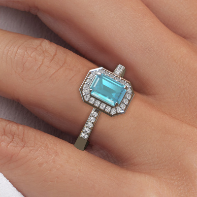 Deze verlovingsring heeft de naam Dodie 2 eme. Deze mooie verlovingsring uitgevoerd, in platina is gezet met 7x5 mm blauw topaas. Deze exclusieve platina halo verlovingsring is een puur staaltje vakmanschap! Alle kleine details zijn door onze goudsmid met veel geduld en passie vervaardigd. Dit ambacht vraagt een deskundig oog en vaardige hand om deze verlovingsring met uiterste precisie samen te stellen. En dat is precies waar onze goudsmeden enthousiast van worden! De prachtige blauw topaas zijn op een bijzondere manier gezet, zodat deze nog beter tot zijn recht komen. Dit geeft de verlovingsring extra allure. De verlovingsring is al uniek door zijn natuurlijke edelsteen, die we speciaal geselecteerd hebben voor deze ring. Daarnaast kun je zelf de samenstelling kiezen van het edelmetaal, waardoor je uiteindelijk een unieke verlovingsring hebt gecreëerd voor de meest exclusieve vrouw in je leven! Dit juweel is speciaal voor jou gemaakt, met aandacht voor detail en design.Omdat wij zelf alle verlovingsring maken en direct aan jou leveren kunnen wij je een verlovingsring leveren tegen een prijs die je nergens anders zult tegenkomen. Een ring wordt pas gemaakt als we een bestelling krijgen, hierdoor hebben wij geen dure voorraden en kunnen wij je de beste prijs garanderen. Wij begrijpen dat het kopen van een verlovingsring online spannend is en willen daarom je zoveel mogelijk informeren over alle specifieke eigenschappen van de ring die jij koopt.Heb je zelf een speciale ring in gedachten, die je wellicht ergens gezien hebt? Je kunt je ideeën altijd met ons bespreken, wij zetten graag jouw ontwerp om tot een unieke verlovingsring. Het ontwerp kun je volgen, omdat wij met 3D tekeningen werken. Hierdoor krijg je al een realistische indruk van hoe jouw ontwerp er in het echt uit komt te zien. Wij sturen je graag een vrijblijvende offerte, waarbij je ongetwijfeld verwonderd zult zijn over de prijs in combinatie met de uitstekende kwaliteit die we aanbieden.Om het voor jou makkelijker te maken kun je ieder besteld sieraad binnen 30 dagen na aflevering eenvoudig weer retour sturen.