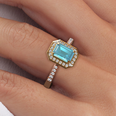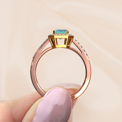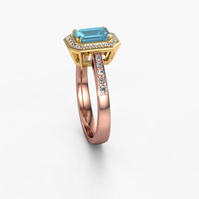 Deze verlovingsring heeft de naam Dodie 2 eme. Deze mooie verlovingsring uitgevoerd, in 14 Carat rosé goud is gezet met 7x5 mm blauw topaas. Deze exclusieve rosé gouden halo verlovingsring is een puur staaltje vakmanschap! Alle kleine details zijn door onze goudsmid met veel geduld en passie vervaardigd. Dit ambacht vraagt een deskundig oog en vaardige hand om deze verlovingsring met uiterste precisie samen te stellen. En dat is precies waar onze goudsmeden enthousiast van worden! De prachtige blauw topaas zijn op een bijzondere manier gezet, zodat deze nog beter tot zijn recht komen. Dit geeft de verlovingsring extra allure. De verlovingsring is al uniek door zijn natuurlijke edelsteen, die we speciaal geselecteerd hebben voor deze ring. Daarnaast kun je zelf de samenstelling kiezen van het edelmetaal, waardoor je uiteindelijk een unieke verlovingsring hebt gecreëerd voor de meest exclusieve vrouw in je leven! Dit juweel is speciaal voor jou gemaakt, met aandacht voor detail en design.Omdat wij zelf alle verlovingsring maken en direct aan jou leveren kunnen wij je een verlovingsring leveren tegen een prijs die je nergens anders zult tegenkomen. Een ring wordt pas gemaakt als we een bestelling krijgen, hierdoor hebben wij geen dure voorraden en kunnen wij je de beste prijs garanderen. Wij begrijpen dat het kopen van een verlovingsring online spannend is en willen daarom je zoveel mogelijk informeren over alle specifieke eigenschappen van de ring die jij koopt.Heb je zelf een speciale ring in gedachten, die je wellicht ergens gezien hebt? Je kunt je ideeën altijd met ons bespreken, wij zetten graag jouw ontwerp om tot een unieke verlovingsring. Het ontwerp kun je volgen, omdat wij met 3D tekeningen werken. Hierdoor krijg je al een realistische indruk van hoe jouw ontwerp er in het echt uit komt te zien. Wij sturen je graag een vrijblijvende offerte, waarbij je ongetwijfeld verwonderd zult zijn over de prijs in combinatie met de uitstekende kwaliteit die we aanbieden.Om het voor jou makkelijker te maken kun je ieder besteld sieraad binnen 30 dagen na aflevering eenvoudig weer retour sturen.