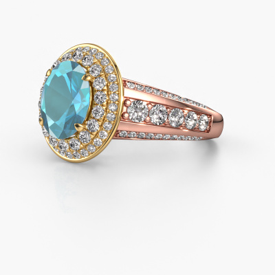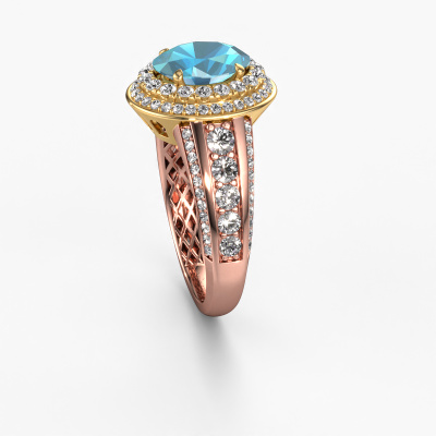 Deze verlovingsring heeft de naam Nancie. Deze gracieuze verlovingsring uitgevoerd, in 14 Carat rosé goud is gezet met 9x7 mm blauw topaas. Deze exclusieve rosé gouden halo verlovingsring is een puur staaltje vakmanschap! Alle kleine details zijn door onze goudsmid met veel geduld en passie vervaardigd. Dit ambacht vraagt een deskundig oog en vaardige hand om deze verlovingsring met uiterste precisie samen te stellen. En dat is precies waar onze goudsmeden enthousiast van worden! De prachtige blauw topaas zijn op een bijzondere manier gezet, zodat deze nog beter tot zijn recht komen. Dit geeft de verlovingsring extra allure. De verlovingsring is al uniek door zijn natuurlijke edelsteen, die we speciaal geselecteerd hebben voor deze ring. Daarnaast kun je zelf de samenstelling kiezen van het edelmetaal, waardoor je uiteindelijk een unieke verlovingsring hebt gecreëerd voor de meest exclusieve vrouw in je leven! Dit juweel is gemaakt om aan je vinger te stralen, ieder sieraad wordt met liefde door onze goudsmeden met de hand gemaakt.Wellicht is het je opgevallen dat onze prijzen gemiddeld 30% lager liggen dan bij een andere juwelier. En dat terwijl de kwaliteit in de meeste gevallen nog beter is! Dit komt doordat onze goudsmeden je verlovingsring direct in ons eigen atelier vervaardigen. Hierdoor hoeven we geen dure voorraden te hanteren en kunnen we ieder gewenst detail direct op jouw verlovingsring aanbrengen.Iedere dag is ons team van goudsmeden en sieradenontwerpers aan het werk om nieuwe sieraden te creëren. Het kan zijn dat je ergens een klassieke verlovingsring gezien hebt, die je als basis wilt nemen bij het ontwerpen van jouw unieke ring. Neem gerust contact met ons op en we zullen je een aanbod doen, waar je vrijwel zeker verwonderd zult zijn over de kwaliteit en de prijs.Om het voor jou makkelijker te maken kun je ieder besteld sieraad binnen 30 dagen na aflevering eenvoudig weer retour sturen.