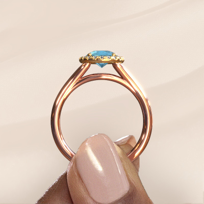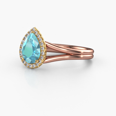 Deze verlovingsring heeft de naam Verla pear 1. Deze sierlijke verlovingsring uitgevoerd, in 14 Carat rosé goud is gezet met 8x6 mm blauw topaas. Deze exclusieve rosé gouden halo verlovingsring is een puur staaltje vakmanschap! Alle kleine details zijn door onze goudsmid met veel geduld en passie vervaardigd. Dit ambacht vraagt een deskundig oog en vaardige hand om deze verlovingsring met uiterste precisie samen te stellen. En dat is precies waar onze goudsmeden enthousiast van worden! De prachtige blauw topaas zijn op een bijzondere manier gezet, zodat deze nog beter tot zijn recht komen. Dit geeft de verlovingsring extra allure. De verlovingsring is al uniek door zijn natuurlijke edelsteen, die we speciaal geselecteerd hebben voor deze ring. Daarnaast kun je zelf de samenstelling kiezen van het edelmetaal, waardoor je uiteindelijk een unieke verlovingsring hebt gecreëerd voor de meest exclusieve vrouw in je leven! Dit juweel is gemaakt om aan jouw vinger te stralen, ieder sieraad wordt met liefde door onze goudsmeden met de hand gemaakt.Door het gebruik van de modernste technieken, gecombineerd met ambachtelijk vakmanschap kunnen wij alle verlovingsringen zelf in ons atelier maken. Ieder sieraad wordt pas gemaakt nadat deze besteld is. Dit heeft als bijkomend voordeel dat we kunnen leveren tegen een prijs die je nergens anders tegenkomt.Heb je zelf een specifieke verlovingsring ergens gezien, die je graag aan jouw geliefde zou willen geven? Bespreek gerust jouw ideeën met onze sieradenontwerpers, want wij zetten graag jouw ontwerp om tot een luxe verlovingsring. Je kunt tijdens het ontwerpproces steeds meekijken, omdat wij met 3D tekeningen werken. Je krijgt hierdoor al een realistische indruk van hoe jouw ontwerp er in werkelijkheid uit komt te zien. Daarbij kun je een dummy vooraf bestellen. Een dummy is een kunststof ring, die precies dezelfde vormen heeft als jouw uiteindelijke ontwerp. Je kunt deze passen en zien of de breedte en dikte bijvoorbeeld naar wens zijn. Wij sturen je graag een vrijblijvende offerte, waarbij je ongetwijfeld versteld zult staan over de prijs en de kwaliteit van de ring en edelstenen.Om het voor jou makkelijker te maken kun je ieder besteld sieraad binnen 30 dagen na aflevering eenvoudig weer retour sturen.
