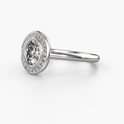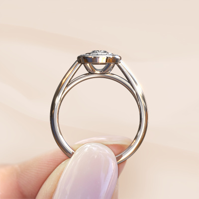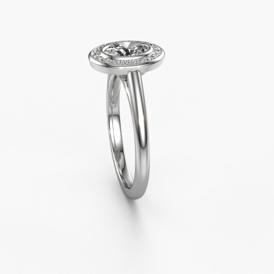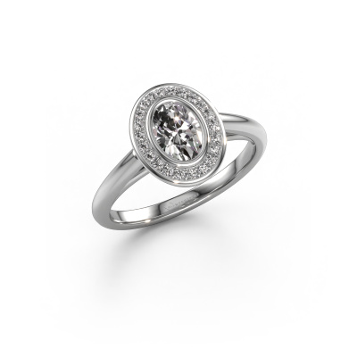 Bovenstaande verlovingsring heeft de naam Noud 1 OVL. Dit type verlovingsring noemen we een halo ring. De verlovingsring is uitgevoerd in platina en heeft als middensteen een ovale diamant ter grootte van 0.60 crt en eromheen zijn kleine lab-grown diamanten gezet. Het bijzondere van deze klassieke platina halo verlovingsring zijn de kleinere edelstenen die rondom de grote diamant zijn gezet. Dat is ook waar deze mooie verlovingsring zijn naam door heeft gekregen: halo betekent lichtkrans en dat is ook waar de kleinere edelstenen voor zorgen. Deze kleinere edelstenen moeten dan echter wel allen op dezelfde manier geplaatst zijn, zodat het licht niet doorbroken wordt in de diamant en er inderdaad een prachtige lichtkrans gecreëerd wordt. En daar zorgen onze meestergoudsmeden voor. Met uiterste precisie wordt iedere zorgvuldig geselecteerde diamant met de hand in de verlovingsring geplaatst. Steeds opnieuw wordt de verlovingsring tegen het licht gehouden om te zien of het speciale effect nog steeds zichtbaar is. Het resultaat is een unieke verlovingsring, waarbij de gekozen diamant letterlijk het stralende middelpunt wordt. Je kunt je voorstellen dat deze verlovingsring werkelijk een betekenisvolle verlovingsring is om aan jouw liefde voor het leven te schenken! Op de dag dat jij laat zien dat zij jouw stralende middelpunt is!Door het gebruik van de modernste technieken, gecombineerd met ambachtelijk vakmanschap kunnen wij alle verlovingsringen zelf in ons atelier maken. Ieder sieraad wordt pas gemaakt nadat deze besteld is. Dit heeft als bijkomend voordeel dat we kunnen leveren tegen een prijs die je nergens anders tegenkomt.Ons team is iedere dag weer bezig om nieuwe ontwerpen toe te voegen, in samenwerking met onze designers en goudsmeden wordt gekeken hoe we tot het mooiste ontwerp kunnen komen. Wij doen ons best om tot een zo gevarieerd mogelijk aanbod te komen. Wellicht heb je zelf al een mooi idee van een sieraad dat je ooit wel eens gezien hebt. Neem dan eens vrijblijvend contact met ons op. Wij maken een offerte voor je op waarbij wij vrij zeker zijn dat we wat betreft kwaliteit en prijs jou versteld zullen laten staan.Om het voor jou makkelijker te maken kun je ieder besteld sieraad binnen 30 dagen na aflevering eenvoudig weer retour sturen.