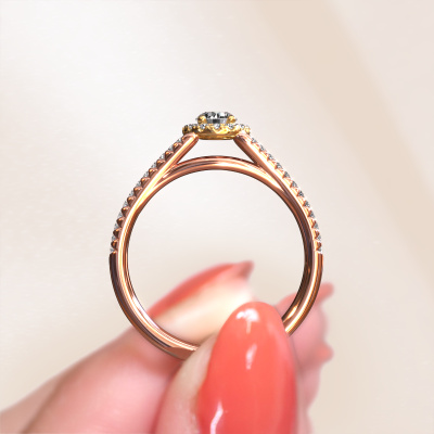 Deze verlovingsring heeft de naam Verla rnd 2. Deze gespleten banden verlovingsring uitgevoerd, in 14 Carat rosé goud is gezet met 0.584 crt diamant. Deze exclusieve rosé gouden halo verlovingsring is een puur staaltje vakmanschap! Alle kleine details zijn door onze goudsmid met veel geduld en passie vervaardigd. Dit ambacht vraagt een deskundig oog en vaardige hand om deze verlovingsring met uiterste precisie samen te stellen. En dat is precies waar onze goudsmeden enthousiast van worden! De prachtige diamanten zijn op een bijzondere manier gezet, zodat deze nog beter tot zijn recht komen. Dit geeft de verlovingsring extra allure. De verlovingsring is al uniek door zijn natuurlijke edelsteen, die we speciaal geselecteerd hebben voor deze ring. Daarnaast kun je zelf de samenstelling kiezen van het edelmetaal, waardoor je uiteindelijk een unieke verlovingsring hebt gecreëerd voor de meest exclusieve vrouw in je leven! Dit juweel is speciaal voor jou gemaakt, met aandacht voor detail en design.Omdat wij zelf alle verlovingsring maken en direct aan jou leveren kunnen wij je een verlovingsring leveren tegen een prijs die je nergens anders zult tegenkomen. Een ring wordt pas gemaakt als we een bestelling krijgen, hierdoor hebben wij geen dure voorraden en kunnen wij je de beste prijs garanderen. Wij begrijpen dat het kopen van een verlovingsring online spannend is en willen daarom je zoveel mogelijk informeren over alle specifieke eigenschappen van de ring die jij koopt.Ons team is iedere dag weer bezig om nieuwe ontwerpen toe te voegen, in samenwerking met onze designers en goudsmeden wordt gekeken hoe we tot het mooiste ontwerp kunnen komen. Wij doen ons best om tot een zo gevarieerd mogelijk aanbod te komen. Wellicht heb je zelf al een mooi idee van een sieraad dat je ooit wel eens gezien hebt. Neem dan eens vrijblijvend contact met ons op. Wij maken een offerte voor je op waarbij wij vrij zeker zijn dat we wat betreft kwaliteit en prijs jou versteld zullen laten staan.Om het voor jou makkelijker te maken kun je ieder besteld sieraad binnen 30 dagen na aflevering eenvoudig weer retour sturen.