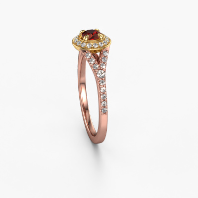 Deze verlovingsring heeft de naam Pamela RND. Deze opengewerkte verlovingsring uitgevoerd, in 14 Carat rosé goud is gezet met 4 mm granaat. Deze exclusieve rosé gouden halo verlovingsring is een puur staaltje vakmanschap! Alle kleine details zijn door onze goudsmid met veel geduld en passie vervaardigd. Dit ambacht vraagt een deskundig oog en vaardige hand om deze verlovingsring met uiterste precisie samen te stellen. En dat is precies waar onze goudsmeden enthousiast van worden! De prachtige granaat zijn op een bijzondere manier gezet, zodat deze nog beter tot zijn recht komen. Dit geeft de verlovingsring extra allure. De verlovingsring is al uniek door zijn natuurlijke edelsteen, die we speciaal geselecteerd hebben voor deze ring. Daarnaast kun je zelf de samenstelling kiezen van het edelmetaal, waardoor je uiteindelijk een unieke verlovingsring hebt gecreëerd voor de meest exclusieve vrouw in je leven! Dit juweel is uniek, doordat je deze ring geheel naar eigen wensen kunt samenstellen.Omdat wij zelf alle verlovingsring maken en direct aan jou leveren kunnen wij je een verlovingsring leveren tegen een prijs die je nergens anders zult tegenkomen. Een ring wordt pas gemaakt als we een bestelling krijgen, hierdoor hebben wij geen dure voorraden en kunnen wij je de beste prijs garanderen. Wij begrijpen dat het kopen van een verlovingsring online spannend is en willen daarom je zoveel mogelijk informeren over alle specifieke eigenschappen van de ring die jij koopt.Ons team is iedere dag weer bezig om nieuwe ontwerpen toe te voegen, in samenwerking met onze designers en goudsmeden wordt gekeken hoe we tot het mooiste ontwerp kunnen komen. Wij doen ons best om tot een zo gevarieerd mogelijk aanbod te komen. Wellicht heb je zelf al een mooi idee van een sieraad dat je ooit wel eens gezien hebt. Neem dan eens vrijblijvend contact met ons op. Wij maken een offerte voor je op waarbij wij vrij zeker zijn dat we wat betreft kwaliteit en prijs jou versteld zullen laten staan.Om het voor jou makkelijker te maken kun je ieder besteld sieraad binnen 30 dagen na aflevering eenvoudig weer retour sturen.