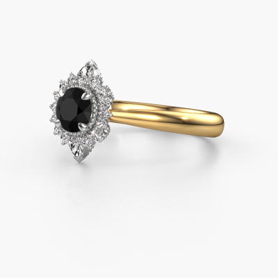 Deze verlovingsring heeft de naam Susan. Deze smaakvolle verlovingsring uitgevoerd in 14 Carat goud is gezet met 0.985 crt zwarte diamant. Heeft jouw vriendin een zwak voor vintage? Dan kun je er vrijwel zeker van zijn dat deze gouden verlovingsring helemaal bij haar stijl zal passen! Een nieuw model, gebaseerd op vintage motieven. Ietwat dromerig, een prachtig ontwerp! Zeker als je deze nog verder aangepast naar jullie smaak. In deze vintage halo verlovingsring zijn prachtige zwarte diamanten verwerkt. Zoals je ziet kun je zelf voor een edelsteen kiezen die jij bij je vriendin vindt passen. Iedere edelsteen wordt zorgvuldig geselecteerd bij onze handelaren wereldwijd, onze goudsmid wil alleen de mooiste edelstenen op een juweel verwerken. Het is immers de kroon op zijn werk! Ieder juweel is speciaal voor jou gemaakt, met aandacht voor detail en design.Door het gebruik van de modernste technieken, gecombineerd met ambachtelijk vakmanschap kunnen wij alle verlovingsringen zelf in ons atelier maken. Ieder sieraad wordt pas gemaakt nadat deze besteld is. Dit heeft als bijkomend voordeel dat we kunnen leveren tegen een prijs die je nergens anders tegenkomt.Ons team is iedere dag weer bezig om nieuwe ontwerpen toe te voegen, in samenwerking met onze designers en goudsmeden wordt gekeken hoe we tot het mooiste ontwerp kunnen komen. Wij doen ons best om tot een zo gevarieerd mogelijk aanbod te komen. Wellicht heb je zelf al een mooi idee van een sieraad dat je ooit wel eens gezien hebt. Neem dan eens vrijblijvend contact met ons op. Wij maken een offerte voor je op waarbij wij vrij zeker zijn dat we wat betreft kwaliteit en prijs jou versteld zullen laten staan.Om het voor jou makkelijker te maken kun je ieder besteld sieraad binnen 30 dagen na aflevering eenvoudig weer retour sturen.