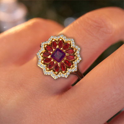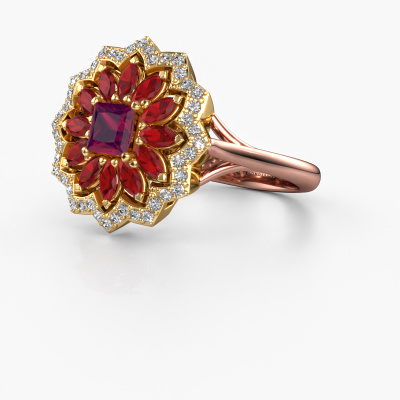 Deze verlovingsring heeft de naam Franka. Deze gedurfde verlovingsring uitgevoerd in 14 Carat rosé goud is gezet met 4 mm rhodoliet. Heeft jouw vriendin een zwak voor vintage? Dan kun je er vrijwel zeker van zijn dat deze rosé gouden verlovingsring helemaal bij haar stijl zal passen! Een nieuw model, gebaseerd op vintage motieven. Ietwat dromerig, een prachtig ontwerp! Zeker als je deze nog verder aangepast naar jullie smaak. In deze vintage halo verlovingsring zijn prachtige rhodoliet verwerkt. Zoals je ziet kun je zelf voor een edelsteen kiezen die jij bij je vriendin vindt passen. Iedere edelsteen wordt zorgvuldig geselecteerd bij onze handelaren wereldwijd, onze goudsmid wil alleen de mooiste edelstenen op een juweel verwerken. Het is immers de kroon op zijn werk! Ieder juweel wordt speciaal voor jou gemaakt door onze meester goudsmeden in ons eigen atelier.Door het gebruik van de modernste technieken, gecombineerd met ambachtelijk vakmanschap kunnen wij alle verlovingsringen zelf in ons atelier maken. Ieder sieraad wordt pas gemaakt nadat deze besteld is. Dit heeft als bijkomend voordeel dat we kunnen leveren tegen een prijs die je nergens anders tegenkomt.Iedere dag is ons team van goudsmeden en sieradenontwerpers aan het werk om nieuwe sieraden te creëren. Het kan zijn dat je ergens een vintage verlovingsring gezien hebt, die je als basis wilt nemen bij het ontwerpen van jouw unieke ring. Neem gerust contact met ons op en we zullen je een aanbod doen, waar je vrijwel zeker verwonderd zult zijn over de kwaliteit en de prijs.Om het voor jou makkelijker te maken kun je ieder besteld sieraad binnen 30 dagen na aflevering eenvoudig weer retour sturen.