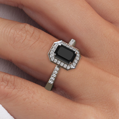 Deze verlovingsring heeft de naam Dodie 2 eme. Deze mooie verlovingsring uitgevoerd, in platina is gezet met 1.592 crt zwarte diamant. Deze exclusieve platina halo verlovingsring is een puur staaltje vakmanschap! Alle kleine details zijn door onze goudsmid met veel geduld en passie vervaardigd. Dit ambacht vraagt een deskundig oog en vaardige hand om deze verlovingsring met uiterste precisie samen te stellen. En dat is precies waar onze goudsmeden enthousiast van worden! De prachtige zwarte diamanten zijn op een bijzondere manier gezet, zodat deze nog beter tot zijn recht komen. Dit geeft de verlovingsring extra allure. De verlovingsring is al uniek door zijn natuurlijke edelsteen, die we speciaal geselecteerd hebben voor deze ring. Daarnaast kun je zelf de samenstelling kiezen van het edelmetaal, waardoor je uiteindelijk een unieke verlovingsring hebt gecreëerd voor de meest exclusieve vrouw in je leven! Dit juweel is speciaal voor jou gemaakt, met aandacht voor detail en design.Omdat wij zelf alle verlovingsring maken en direct aan jou leveren kunnen wij je een verlovingsring leveren tegen een prijs die je nergens anders zult tegenkomen. Een ring wordt pas gemaakt als we een bestelling krijgen, hierdoor hebben wij geen dure voorraden en kunnen wij je de beste prijs garanderen. Wij begrijpen dat het kopen van een verlovingsring online spannend is en willen daarom je zoveel mogelijk informeren over alle specifieke eigenschappen van de ring die jij koopt.Heb je zelf een speciale ring in gedachten, die je wellicht ergens gezien hebt? Je kunt je ideeën altijd met ons bespreken, wij zetten graag jouw ontwerp om tot een unieke verlovingsring. Het ontwerp kun je volgen, omdat wij met 3D tekeningen werken. Hierdoor krijg je al een realistische indruk van hoe jouw ontwerp er in het echt uit komt te zien. Wij sturen je graag een vrijblijvende offerte, waarbij je ongetwijfeld verwonderd zult zijn over de prijs in combinatie met de uitstekende kwaliteit die we aanbieden.Om het voor jou makkelijker te maken kun je ieder besteld sieraad binnen 30 dagen na aflevering eenvoudig weer retour sturen.