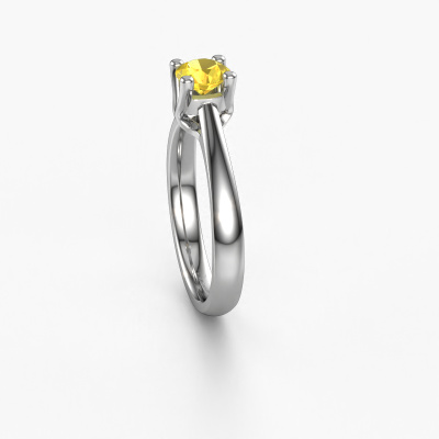 Bovenstaande verlovingsring heeft de naam Janna 1. Dit type verlovingsring noemen we een solitaire verlovingsring omdat hij een enkele edelsteen bevat. De verlovingsring is uitgevoerd in platina en heeft een ronde gele saffier ter grootte van 5 mm. Deze schitterende klassieke platina solitaire ring heeft een prachtige ronde gele saffier om je aanzoek heel speciaal te maken. De open chatonzetting zorgt voor een prachtige lichtinval op de diamant. Wist je dat de diamant bijvoorbeeld symbool staat voor eeuwige liefde en trouw? Juist daarom is het een prachtige edelsteen om in het middelpunt te stellen. Onze goudsmid plaatst met veel zorgvuldigheid de gekozen edelsteen hoog op de ring, waardoor het een echte eyecatcher is. Ieder juweel is gemaakt door een team van gedreven goudsmeden en designers. Hierdoor zal dit unieke pronkstuk een echte eyecatcher zijn.Wellicht is het je opgevallen dat onze prijzen gemiddeld 30% lager liggen dan bij een andere juwelier. En dat terwijl de kwaliteit in de meeste gevallen nog beter is! Dit komt doordat onze goudsmeden je verlovingsring direct in ons eigen atelier vervaardigen. Hierdoor hoeven we geen dure voorraden te hanteren en kunnen we ieder gewenst detail direct op jouw verlovingsring aanbrengen.Iedere dag is ons team van goudsmeden en sieradenontwerpers aan het werk om nieuwe sieraden te creëren. Het kan zijn dat je ergens een klassieke verlovingsring gezien hebt, die je als basis wilt nemen bij het ontwerpen van jouw unieke ring. Neem gerust contact met ons op en we zullen je een aanbod doen, waar je vrijwel zeker verwonderd zult zijn over de kwaliteit en de prijs.Om het voor jou makkelijker te maken kun je ieder besteld sieraad binnen 30 dagen na aflevering eenvoudig weer retour sturen.