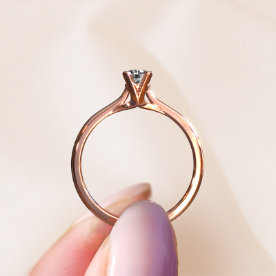 Bovenstaande verlovingsring heeft de naam Isa 1. Dit type verlovingsring noemen we een solitaire verlovingsring omdat hij een enkele edelsteen bevat. De verlovingsring is uitgevoerd in 14 Carat rosé goud en heeft een ronde diamant ter grootte van 0.25 crt. Deze schitterende klassieke rosé gouden solitaire ring heeft een prachtige ronde diamant om je aanzoek heel speciaal te maken. De open chatonzetting zorgt voor een prachtige lichtinval op de diamant. Wist je dat de diamant bijvoorbeeld symbool staat voor eeuwige liefde en trouw? Juist daarom is het een prachtige edelsteen om in het middelpunt te stellen. Onze goudsmid plaatst met veel zorgvuldigheid de gekozen edelsteen hoog op de ring, waardoor het een echte eyecatcher is. Ieder juweel wordt speciaal voor jou gemaakt door onze meester goudsmeden in ons eigen atelier.Door het gebruik van de modernste technieken, gecombineerd met ambachtelijk vakmanschap kunnen wij alle verlovingsringen zelf in ons atelier maken. Ieder sieraad wordt pas gemaakt nadat deze besteld is. Dit heeft als bijkomend voordeel dat we kunnen leveren tegen een prijs die je nergens anders tegenkomt.Heb je zelf een speciale ring in gedachten, die je wellicht ergens gezien hebt? Je kunt je ideeën altijd met ons bespreken, wij zetten graag jouw ontwerp om tot een unieke verlovingsring. Het ontwerp kun je volgen, omdat wij met 3D tekeningen werken. Hierdoor krijg je al een realistische indruk van hoe jouw ontwerp er in het echt uit komt te zien. Wij sturen je graag een vrijblijvende offerte, waarbij je ongetwijfeld verwonderd zult zijn over de prijs in combinatie met de uitstekende kwaliteit die we aanbieden.Om het voor jou makkelijker te maken kun je ieder besteld sieraad binnen 30 dagen na aflevering eenvoudig weer retour sturen.