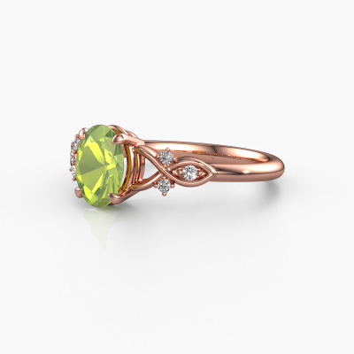 De naam van deze verlovingsring is de Azra OVL. Hij is gemaakt van 14 Carat rosé goud en gezet met een 8x6 mm peridoot. Zoek je een klassieke rosé gouden verlovingsring, die je zelf naar jouw smaak kunt aanpassen? In deze klassieke verlovingsring is peridoot verwerkt. Deze zijn zorgvuldig geselecteerd om het mooiste effect te creëren. Onze goudsmid vervaardigt jouw verlovingsring beneden in ons eigen atelier, en plaatst de peridoot met uiterste precisie in de ring. Vervolgens wordt deze bijgewerkt en gepolijst totdat het resultaat zichtbaar is: de perfecte verlovingsring voor de liefde van jouw leven! Dit juweel is gemaakt door een team van gedreven goudsmeden en designers. Hierdoor zal dit unieke pronkstuk een echte eyecatcher zijn.Onze goudsmeden vervaardigen pas je Azra OVL verlovingsring, zodra je deze besteld hebt. We hebben geen voorraden. Het voordeel hiervan is dat we de voorraad niet door hoeven te berekenen in de prijs, en kunnen daardoor sieraden leveren tegen een bijzonder lage prijs.Heb je zelf een speciale ring in gedachten, die je wellicht ergens gezien hebt? Je kunt je ideeën altijd met ons bespreken, wij zetten graag jouw ontwerp om tot een unieke verlovingsring. Het ontwerp kun je volgen, omdat wij met 3D tekeningen werken. Hierdoor krijg je al een realistische indruk van hoe jouw ontwerp er in het echt uit komt te zien. Wij sturen je graag een vrijblijvende offerte, waarbij je ongetwijfeld verwonderd zult zijn over de prijs in combinatie met de uitstekende kwaliteit die we aanbieden.Om het voor jou makkelijker te maken kun je ieder besteld sieraad binnen 30 dagen na aflevering eenvoudig weer retour sturen.