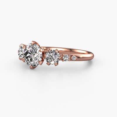 De naam van deze verlovingsring is de Aniek RND. Hij is gemaakt van 14 Carat rosé goud en gezet met 1.565 crt lab-grown diamant. Hoe zou je de stijl omschrijven van de liefde van jouw leven? Houdt zij van iets dat net een beetje anders is dan anders? Deze sierlijke rosé gouden verlovingsring is een mooie ring, die je zelf naar jouw of haar smaak verder kunt aanpassen. In deze fantasie verlovingsring is lab-grown diamant verwerkt. Deze lab-grown diamanten zijn zorgvuldig geselecteerd, want wij vinden dat op jouw verlovingsring alleen de mooiste edelsteen mag schitteren, toch? Dit juweel wordt speciaal voor jou gemaakt door onze meester goudsmeden in ons eigen atelier.Wellicht is het je opgevallen dat onze prijzen gemiddeld 30% lager liggen dan bij een andere juwelier. En dat terwijl de kwaliteit in de meeste gevallen nog beter is! Dit komt doordat onze goudsmeden je verlovingsring direct in ons eigen atelier vervaardigen. Hierdoor hoeven we geen dure voorraden te hanteren en kunnen we ieder gewenst detail direct op jouw verlovingsring aanbrengen.Heb je zelf een specifieke verlovingsring ergens gezien, die je graag aan jouw geliefde zou willen geven? Bespreek gerust jouw ideeën met onze sieradenontwerpers, want wij zetten graag jouw ontwerp om tot een fantasie verlovingsring. Je kunt tijdens het ontwerpproces steeds meekijken, omdat wij met 3D tekeningen werken. Je krijgt hierdoor al een realistische indruk van hoe jouw ontwerp er in werkelijkheid uit komt te zien. Daarbij kun je een dummy vooraf bestellen. Een dummy is een kunststof ring, die precies dezelfde vormen heeft als jouw uiteindelijke ontwerp. Je kunt deze passen en zien of de breedte en dikte bijvoorbeeld naar wens zijn. Wij sturen je graag een vrijblijvende offerte, waarbij je ongetwijfeld versteld zult staan over de prijs en de kwaliteit van de ring en edelstenen.Om het voor jou makkelijker te maken kun je ieder besteld sieraad binnen 30 dagen na aflevering eenvoudig weer retour sturen.