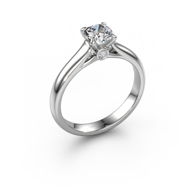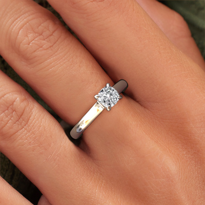 Bovenstaande verlovingsring heeft de naam Valorie cus 1, dit type verlovingsring noemen we een solitaire ring omdat hij een enkele edelsteen bevat. De verlovingsring is uitgevoerd in platina en heeft een cushion lab-grown diamant ter grootte van 0.70 crt. Het leuke van onze configurator is dat je zelf je juweel kunt samenstellen tot een eigen persoonlijk juweel. Deze solitaire ring is uitgevoerd in de edelmetaal combinatie platina met platina, maar u kunt dus ook uit andere kleuren kiezen. Ieder juweel is gemaakt om aan jouw vinger te stralen, ieder sieraad wordt met liefde door onze goudsmeden met de hand gemaakt.De solitaire verlovingsring is een bijzondere verlovingsring. Juist doordat de chatonzetting open is, creëert de lichtinval een schitterend effect op de edelsteen. Omdat de gekozen edelsteen hoog op de verlovingsring geplaatst wordt, wordt deze klassieke verlovingsring een prachtige eyecatcher. Met veel zorgvuldigheid vervaardigen wij alle details in deze solitaire verlovingsring met de hand, zodat jij binnenkort je aanzoek kunt bekronen met een unieke ring, speciaal voor de liefde van jouw leven!Wellicht is het je opgevallen dat onze prijzen gemiddeld 30% lager liggen dan bij een andere juwelier. En dat terwijl de kwaliteit in de meeste gevallen nog beter is! Dit komt doordat onze goudsmeden je verlovingsring direct in ons eigen atelier vervaardigen. Hierdoor hoeven we geen dure voorraden te hanteren en kunnen we ieder gewenst detail direct op jouw verlovingsring aanbrengen.Heb je zelf een specifieke verlovingsring ergens gezien, die je graag aan jouw geliefde zou willen geven? Bespreek gerust jouw ideeën met onze sieradenontwerpers, want wij zetten graag jouw ontwerp om tot een klassieke verlovingsring. Je kunt tijdens het ontwerpproces steeds meekijken, omdat wij met 3D tekeningen werken. Je krijgt hierdoor al een realistische indruk van hoe jouw ontwerp er in werkelijkheid uit komt te zien. Daarbij kun je een dummy vooraf bestellen. Een dummy is een kunststof ring, die precies dezelfde vormen heeft als jouw uiteindelijke ontwerp. Je kunt deze passen en zien of de breedte en dikte bijvoorbeeld naar wens zijn. Wij sturen je graag een vrijblijvende offerte, waarbij je ongetwijfeld versteld zult staan over de prijs en de kwaliteit van de ring en edelstenen.Om het voor jou makkelijker te maken kun je ieder besteld sieraad binnen 30 dagen na aflevering eenvoudig weer retour sturen.
