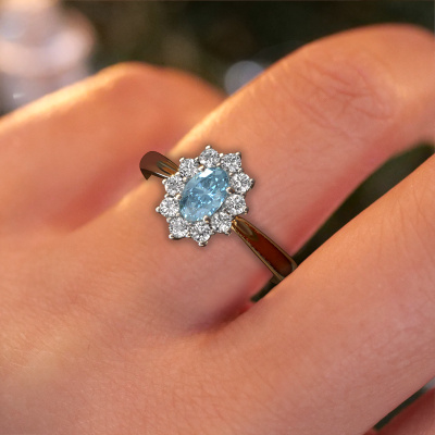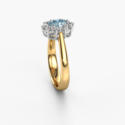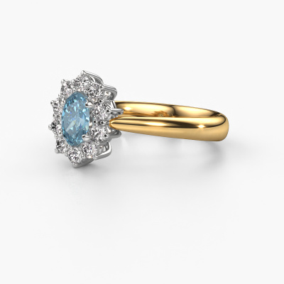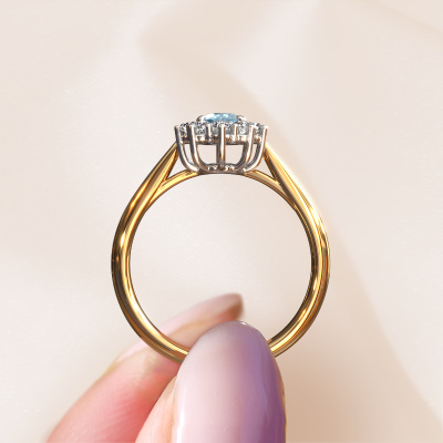 Bovenstaande verlovingsring heeft de naam Leesa 1. Dit type verlovingsring noemen we een Lady Diana ring. Hierbij worden rondom de middensteen in een open zetting allemaal kleine edelstenen gezet. Deze verlovingsring uitgevoerd in 14 Carat goud heeft een ovale blauwe lab grown diamant van 6x4 mm als center steen met daaromheen kleine diamanten. Wat deze klassieke gouden Lady Diana verlovingsring bijzonder maakt, zijn de kleinere edelstenen die rondom de grote blauwe lab grown diamant zijn gezet in de vorm van een prachtige bloem. Hierdoor lijkt het één grote fonkelende edelsteen te vormen. Een andere naam voor deze verlovingsring is hierdoor ook wel de flower of de rozet ring. Deze kleinere diamanten moeten dan echter wel allen op dezelfde manier geplaatst zijn, zodat het licht niet onderbroken wordt in de blauwe lab grown diamant en er inderdaad een prachtige eenheid gecreëerd wordt. En daar zorgen onze meestergoudsmeden voor. Met uiterste precisie wordt iedere zorgvuldig geselecteerde blauwe lab grown diamant met de hand in de verlovingsring geplaatst. Steeds opnieuw wordt de verlovingsring onder de loep gehouden om te zien of het speciale effect nog steeds zichtbaar is. Het resultaat is een unieke verlovingsring, waarbij de gekozen blauwe lab grown diamant letterlijk het stralende middelpunt wordt. Je kunt je voorstellen dat deze verlovingsring werkelijk een betekenisvolle verlovingsring is om aan jouw liefde voor het leven te schenken! Op de dag dat jij laat zien dat zij jouw stralende middelpunt is! Dit juweel is gemaakt om aan jouw vinger te stralen, ieder sieraad wordt met liefde door onze goudsmeden met de hand gemaakt.Onze goudsmeden vervaardigen pas je Leesa 1 verlovingsring, zodra je deze besteld hebt. We hebben geen voorraden. Het voordeel hiervan is dat we de voorraad niet door hoeven te berekenen in de prijs, en kunnen daardoor sieraden leveren tegen een bijzonder lage prijs.Heb je zelf een specifieke verlovingsring ergens gezien, die je graag aan jouw geliefde zou willen geven? Bespreek gerust jouw ideeën met onze sieradenontwerpers, want wij zetten graag jouw ontwerp om tot een klassieke verlovingsring. Je kunt tijdens het ontwerpproces steeds meekijken, omdat wij met 3D tekeningen werken. Je krijgt hierdoor al een realistische indruk van hoe jouw ontwerp er in werkelijkheid uit komt te zien. Daarbij kun je een dummy vooraf bestellen. Een dummy is een kunststof ring, die precies dezelfde vormen heeft als jouw uiteindelijke ontwerp. Je kunt deze passen en zien of de breedte en dikte bijvoorbeeld naar wens zijn. Wij sturen je graag een vrijblijvende offerte, waarbij je ongetwijfeld versteld zult staan over de prijs en de kwaliteit van de ring en edelstenen.Om het voor jou makkelijker te maken kun je ieder besteld sieraad binnen 30 dagen na aflevering eenvoudig weer retour sturen.