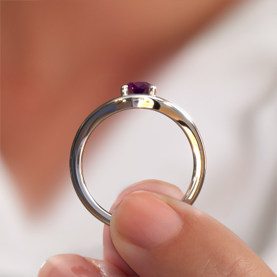 De naam van deze verlovingsring is de Femke PER. Hij is gemaakt van 14 Carat witgoud en gezet met een 7x5 mm rhodoliet. Zoek je een luxe witgouden verlovingsring, die je zelf naar jouw smaak kunt aanpassen? In deze luxe verlovingsring is rhodoliet