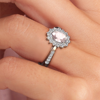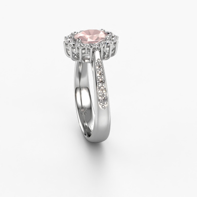 Bovenstaande verlovingsring heeft de naam Margien 2. Dit type verlovingsring noemen we een Lady Diana ring, hierbij worden rondom de middensteen in een open zetting allemaal kleine edelstenen gezet. Deze verlovingsring uitgevoerd in 14 Carat witgoud heeft een ovale morganiet champagne van 7x5 mm als center steen met daaromheen kleine diamanten. Je kent hem wel, deze prachtige traditionele witgouden Lady Diana Ring... de bekendste en meest besproken verlovingsring ter wereld speciaal voor de meest bijzondere persoon in jouw leven! Heel speciaal aan deze Lady Diana verlovingsring is de prachtige morganiet champagne in het midden. De kleinere edelstenen in de verlovingsring om de morganiet champagne heen versterken de schittering van de middelste steen, waardoor het lijkt alsof je één grote edelsteen draagt. Bij het ontwerp van deze Lady Di verlovingsring wordt dit effect nog meer bekrachtigd. Het bijzondere is, dat onze goudsmeden deze verlovingsring graag voor jou uniek vervaardigen. Doordat de Lady Diana verlovingsring met de hand gemaakt wordt in ons eigen atelier beneden, kunnen wij deze aanpassen zoals jij in gedachten hebt. Dit juweel is gemaakt om aan je vinger te stralen, ieder sieraad wordt met liefde door onze goudsmeden met de hand gemaakt.Wellicht is het je opgevallen dat onze prijzen gemiddeld 30% lager liggen dan bij een andere juwelier. En dat terwijl de kwaliteit in de meeste gevallen nog beter is! Dit komt doordat onze goudsmeden je verlovingsring direct in ons eigen atelier vervaardigen. Hierdoor hoeven we geen dure voorraden te hanteren en kunnen we ieder gewenst detail direct op jouw verlovingsring aanbrengen.Ons team is iedere dag weer bezig om nieuwe ontwerpen toe te voegen, in samenwerking met onze designers en goudsmeden wordt gekeken hoe we tot het mooiste ontwerp kunnen komen. Wij doen ons best om tot een zo gevarieerd mogelijk aanbod te komen. Wellicht heb je zelf al een mooi idee van een sieraad dat je ooit wel eens gezien hebt. Neem dan eens vrijblijvend contact met ons op. Wij maken een offerte voor je op waarbij wij vrij zeker zijn dat we wat betreft kwaliteit en prijs jou versteld zullen laten staan.Om het voor jou makkelijker te maken kun je ieder besteld sieraad binnen 30 dagen na aflevering eenvoudig weer retour sturen.