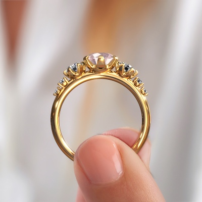 De naam van deze verlovingsring is de Aniek RND. Hij is gemaakt van 14 Carat goud en gezet met 6.5 mm morganiet champagne. Hoe zou je de stijl omschrijven van de liefde van jouw leven? Houdt zij van iets dat net een beetje anders is dan anders? Deze sierlijke gouden verlovingsring is een mooie ring, die je zelf naar jouw of haar smaak verder kunt aanpassen. In deze fantasie verlovingsring is morganiet champagne verwerkt. Deze morganiet champagne zijn zorgvuldig geselecteerd, want wij vinden dat op jouw verlovingsring alleen de mooiste edelsteen mag schitteren, toch? Dit juweel wordt speciaal voor jou gemaakt door onze meester goudsmeden in ons eigen atelier.Wellicht is het je opgevallen dat onze prijzen gemiddeld 30% lager liggen dan bij een andere juwelier. En dat terwijl de kwaliteit in de meeste gevallen nog beter is! Dit komt doordat onze goudsmeden je verlovingsring direct in ons eigen atelier vervaardigen. Hierdoor hoeven we geen dure voorraden te hanteren en kunnen we ieder gewenst detail direct op jouw verlovingsring aanbrengen.Heb je zelf een specifieke verlovingsring ergens gezien, die je graag aan jouw geliefde zou willen geven? Bespreek gerust jouw ideeën met onze sieradenontwerpers, want wij zetten graag jouw ontwerp om tot een fantasie verlovingsring. Je kunt tijdens het ontwerpproces steeds meekijken, omdat wij met 3D tekeningen werken. Je krijgt hierdoor al een realistische indruk van hoe jouw ontwerp er in werkelijkheid uit komt te zien. Daarbij kun je een dummy vooraf bestellen. Een dummy is een kunststof ring, die precies dezelfde vormen heeft als jouw uiteindelijke ontwerp. Je kunt deze passen en zien of de breedte en dikte bijvoorbeeld naar wens zijn. Wij sturen je graag een vrijblijvende offerte, waarbij je ongetwijfeld versteld zult staan over de prijs en de kwaliteit van de ring en edelstenen.Om het voor jou makkelijker te maken kun je ieder besteld sieraad binnen 30 dagen na aflevering eenvoudig weer retour sturen.