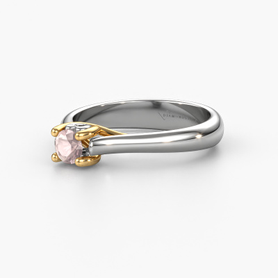 Bovenstaande verlovingsring heeft de naam Nisa, dit type verlovingsring noemen we een solitaire ring omdat hij een enkele edelsteen bevat. De verlovingsring is uitgevoerd in 14 Carat witgoud en heeft een ronde morganiet champagne ter grootte van 4.2 mm. Het leuke van onze configurator is dat je zelf je juweel kunt samenstellen tot een eigen persoonlijk juweel. Deze solitaire ring is uitgevoerd in de edelmetaal combinatie witgoud met goud, maar u kunt dus ook uit andere kleuren kiezen. Ieder juweel is gemaakt door een team van gedreven goudsmeden en designers. Hierdoor zal dit unieke pronkstuk een echte eyecatcher zijn.De solitaire verlovingsring is een bijzondere verlovingsring. Juist doordat de chatonzetting open is, creëert de lichtinval een schitterend effect op de edelsteen. Omdat de gekozen edelsteen hoog op de verlovingsring geplaatst wordt, wordt deze unieke verlovingsring een prachtige eyecatcher. Met veel zorgvuldigheid vervaardigen wij alle details in deze solitaire verlovingsring met de hand, zodat jij binnenkort je aanzoek kunt bekronen met een unieke ring, speciaal voor de liefde van jouw leven!Wellicht is het je opgevallen dat onze prijzen gemiddeld 30% lager liggen dan bij een andere juwelier. En dat terwijl de kwaliteit in de meeste gevallen nog beter is! Dit komt doordat onze goudsmeden je verlovingsring direct in ons eigen atelier vervaardigen. Hierdoor hoeven we geen dure voorraden te hanteren en kunnen we ieder gewenst detail direct op jouw verlovingsring aanbrengen.Iedere dag is ons team van goudsmeden en sieradenontwerpers aan het werk om nieuwe sieraden te creëren. Het kan zijn dat je ergens een unieke verlovingsring gezien hebt, die je als basis wilt nemen bij het ontwerpen van jouw unieke ring. Neem gerust contact met ons op en we zullen je een aanbod doen, waar je vrijwel zeker verwonderd zult zijn over de kwaliteit en de prijs.Om het voor jou makkelijker te maken kun je ieder besteld sieraad binnen 30 dagen na aflevering eenvoudig weer retour sturen.