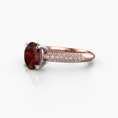 Bovenstaande verlovingsring heeft de naam Morane OVL. Dit type verlovingsring noemen we een Pavé ring. Hierbij worden allemaal kleine edelstenen dicht naast elkaar geplaatst zodat de verlovingsring bijzonder gaat schitteren. Deze verlovingsring uitgevoerd in 14 Carat rosé goud is gezet met granaat 7,5x5,5 mm. Wat wil jij de liefde van jouw leven vertellen, wanneer je haar je aanzoek doet? Rondom deze rosé gouden verlovingsring zijn prachtige granaat gezet, als teken van jullie oneindige liefde voor elkaar. De edelstenen worden zorgvuldig uitgekozen en heel precies geplaatst door onze goudsmid. Want alleen wanneer de granaat precies gelijk naast elkaar worden gezet, kun je de prachtige lichtinval creëren die voor deze verlovingsring zo kenmerkend is. Steeds weer tijdens het ambachtelijk smeden en polijsten houdt de goudsmid jouw verlovingsring in het licht, totdat hij uiteindelijk een perfecte verlovingsring in handen houdt. Door jou samengesteld en speciaal gecreëerd om jouw geliefde te laten stralen! Want er is maar één persoon voor wie deze unieke verlovingsring bedoeld en gemaakt is! Met dit betekenisvolle meesterwerk, het symbool van oneindigheid, vertel je haar dat jouw liefde voor haar oneindig is en dat je de toekomst voor altijd met haar wilt delen. En wat zal haar antwoord daarop zijn? Dit juweel is gemaakt om aan je vinger te stralen, ieder sieraad wordt met liefde door onze goudsmeden met de hand gemaakt.Door onze modernste technieken kunnen wij met uiterste precisie prachtige sieraden te ontwerpen en voor jou personaliseren in de hoogste juwelierskwaliteit. Tegelijkertijd zijn onze verlovingsringen altijd 30% goedkoper dan bij een andere juwelier. Dit komt doordat alle verlovingsringen pas vervaardigd worden op het moment dat deze besteld wordt en we daardoor geen dure voorraden hoeven te hanteren. Mocht je aan een bepaald budget gebonden zijn, kunnen we je graag adviseren welke combinatie je het beste kunt kiezen.Iedere dag is ons team van goudsmeden en sieradenontwerpers aan het werk om nieuwe sieraden te creëren. Het kan zijn dat je ergens een moderne verlovingsring gezien hebt, die je als basis wilt nemen bij het ontwerpen van jouw unieke ring. Neem gerust contact met ons op en we zullen je een aanbod doen, waar je vrijwel zeker verwonderd zult zijn over de kwaliteit en de prijs.Om het voor jou makkelijker te maken kun je ieder besteld sieraad binnen 30 dagen na aflevering eenvoudig weer retour sturen.