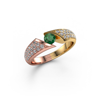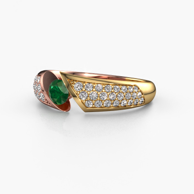 Bovenstaande verlovingsring heeft de naam Hojalien 3. Dit type verlovingsring noemen we een Pavé ring. Hierbij worden allemaal kleine edelstenen dicht naast elkaar geplaatst zodat de verlovingsring bijzonder gaat schitteren. Deze verlovingsring uitgevoerd in 14 Carat rosé goud is gezet met smaragd 4.2 mm. Wat wil jij de liefde van jouw leven vertellen, wanneer je haar je aanzoek doet? Rondom deze rosé gouden verlovingsring zijn prachtige smaragd gezet, als teken van jullie oneindige liefde voor elkaar. De edelstenen worden zorgvuldig uitgekozen en heel precies geplaatst door onze goudsmid. Want alleen wanneer de smaragd precies gelijk naast elkaar worden gezet, kun je de prachtige lichtinval creëren die voor deze verlovingsring zo kenmerkend is. Steeds weer tijdens het ambachtelijk smeden en polijsten houdt de goudsmid jouw verlovingsring in het licht, totdat hij uiteindelijk een perfecte verlovingsring in handen houdt. Door jou samengesteld en speciaal gecreëerd om jouw geliefde te laten stralen! Want er is maar één persoon voor wie deze unieke verlovingsring bedoeld en gemaakt is! Met dit betekenisvolle meesterwerk, het symbool van oneindigheid, vertel je haar dat jouw liefde voor haar oneindig is en dat je de toekomst voor altijd met haar wilt delen. En wat zal haar antwoord daarop zijn? Dit juweel is gemaakt om aan jouw vinger te stralen, ieder sieraad wordt met liefde door onze goudsmeden met de hand gemaakt.Wellicht is het je opgevallen dat onze prijzen gemiddeld 30% lager liggen dan bij een andere juwelier. En dat terwijl de kwaliteit in de meeste gevallen nog beter is! Dit komt doordat onze goudsmeden je verlovingsring direct in ons eigen atelier vervaardigen. Hierdoor hoeven we geen dure voorraden te hanteren en kunnen we ieder gewenst detail direct op jouw verlovingsring aanbrengen.Ons team is iedere dag weer bezig om nieuwe ontwerpen toe te voegen, in samenwerking met onze designers en goudsmeden wordt gekeken hoe we tot het mooiste ontwerp kunnen komen. Wij doen ons best om tot een zo gevarieerd mogelijk aanbod te komen. Wellicht heb je zelf al een mooi idee van een sieraad dat je ooit wel eens gezien hebt. Neem dan eens vrijblijvend contact met ons op. Wij maken een offerte voor je op waarbij wij vrij zeker zijn dat we wat betreft kwaliteit en prijs jou versteld zullen laten staan.Om het voor jou makkelijker te maken kun je ieder besteld sieraad binnen 30 dagen na aflevering eenvoudig weer retour sturen.
