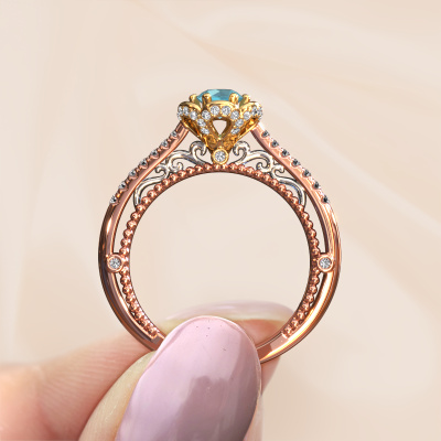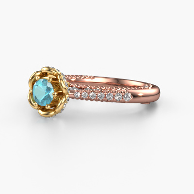 Deze aanzoeksring heeft de naam Abbey. Deze parelranden aanzoeksring uitgevoerd in 14 Carat rosé goud is gezet met 4.2 mm blauw topaas. Heeft jouw vriendin een zwak voor vintage? Dan kun je er vrijwel zeker van zijn dat deze rosé gouden aanzoeksring helemaal bij haar stijl zal passen! Een nieuw model, gebaseerd op vintage motieven. Ietwat dromerig, een prachtig ontwerp! Zeker als je deze nog verder aangepast naar jullie smaak. In deze vintage pavé solitaire aanzoeksring zijn prachtige blauw topaas verwerkt. Zoals je ziet kun je zelf voor een edelsteen kiezen die jij bij je vriendin vindt passen. Iedere edelsteen wordt zorgvuldig geselecteerd bij onze handelaren wereldwijd, onze goudsmid wil alleen de mooiste edelstenen op een juweel verwerken. Het is immers de kroon op zijn werk! Ieder juweel is speciaal voor jou gemaakt, met aandacht voor detail en design.Door onze modernste technieken kunnen wij met uiterste precisie prachtige sieraden te ontwerpen en voor jou personaliseren in de hoogste juwelierskwaliteit. Tegelijkertijd zijn onze aanzoeksringen altijd 30% goedkoper dan bij een andere juwelier. Dit komt doordat alle aanzoeksringen pas vervaardigd worden op het moment dat deze besteld wordt en we daardoor geen dure voorraden hoeven te hanteren. Mocht je aan een bepaald budget gebonden zijn, kunnen we je graag adviseren welke combinatie je het beste kunt kiezen.Iedere dag is ons team van goudsmeden en sieradenontwerpers aan het werk om nieuwe sieraden te creëren. Het kan zijn dat je ergens een vintage aanzoeksring gezien hebt, die je als basis wilt nemen bij het ontwerpen van jouw unieke ring. Neem gerust contact met ons op en we zullen je een aanbod doen, waar je vrijwel zeker verwonderd zult zijn over de kwaliteit en de prijs.Om het voor jou makkelijker te maken kun je ieder besteld sieraad binnen 30 dagen na aflevering eenvoudig weer retour sturen.