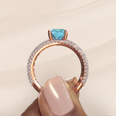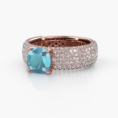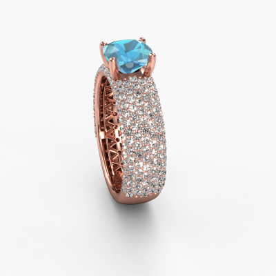 Deze verlovings ring heeft de naam Darcy. Deze pavé verlovings ring uitgevoerd, in 14 Carat rosé goud is gezet met 7 mm blauw topaas. Deze exclusieve rosé gouden pavé solitaire verlovings ring is een puur staaltje vakmanschap! Alle kleine details zijn door onze goudsmid met veel geduld en passie vervaardigd. Dit ambacht vraagt een deskundig oog en vaardige hand om deze verlovings ring met uiterste precisie samen te stellen. En dat is precies waar onze goudsmeden enthousiast van worden! De prachtige blauw topaas zijn op een bijzondere manier gezet, zodat deze nog beter tot zijn recht komen. Dit geeft de verlovings ring extra allure. De verlovings ring is al uniek door zijn natuurlijke edelsteen, die we speciaal geselecteerd hebben voor deze ring. Daarnaast kun je zelf de samenstelling kiezen van het edelmetaal, waardoor je uiteindelijk een unieke verlovings ring hebt gecreëerd voor de meest exclusieve vrouw in je leven! Dit juweel is uniek, doordat je deze ring geheel naar eigen wensen kunt samenstellen.Omdat wij zelf alle verlovings ring maken en direct aan jou leveren kunnen wij je een verlovings ring leveren tegen een prijs die je nergens anders zult tegenkomen. Een ring wordt pas gemaakt als we een bestelling krijgen, hierdoor hebben wij geen dure voorraden en kunnen wij je de beste prijs garanderen. Wij begrijpen dat het kopen van een verlovings ring online spannend is en willen daarom je zoveel mogelijk informeren over alle specifieke eigenschappen van de ring die jij koopt.Ons team ontwerpt dagelijks nieuwe ringen in diverse stijlen. Heb je zelf een pavé solitaire verlovings ring ergens gezien, die jij het liefst aan jouw geliefde zou willen geven? Je kunt altijd jouw ideeën en ontwerp met onze sieradenontwerpers bespreken, want wij zetten graag jouw ontwerp om tot een exclusieve verlovings ring. Je kunt tijdens het ontwerpproces steeds meekijken, omdat het ontwerp in een zeer gedetailleerde 3D tekening wordt omgezet. Daarbij kun je een dummy bestellen van het uiteindelijke ontwerp. Een dummy is een kunststof ring, die precies dezelfde vormen heeft als jouw uiteindelijke ontwerp. Je kunt deze passen en zien of de ontworpen verlovings ring helemaal naar jouw wens is. Wij sturen je graag een vrijblijvende offerte, waarbij je ongetwijfeld versteld zult staan over de prijs en de kwaliteit van de ring en edelstenen.Om het voor jou makkelijker te maken kun je ieder besteld sieraad binnen 30 dagen na aflevering eenvoudig weer retour sturen.
