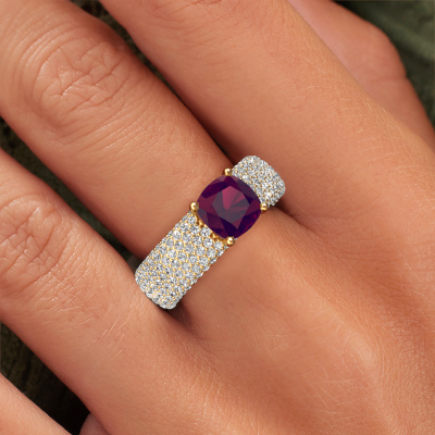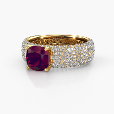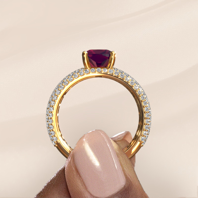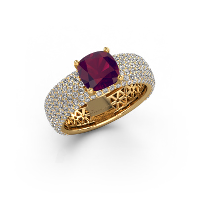 Deze verlovings ring heeft de naam Darcy. Deze pavé verlovings ring uitgevoerd, in 14 Carat goud is gezet met 7 mm rhodoliet. Deze exclusieve gouden pavé solitaire verlovings ring is een puur staaltje vakmanschap! Alle kleine details zijn door onze goudsmid met veel geduld en passie vervaardigd. Dit ambacht vraagt een deskundig oog en vaardige hand om deze verlovings ring met uiterste precisie samen te stellen. En dat is precies waar onze goudsmeden enthousiast van worden! De prachtige rhodoliet zijn op een bijzondere manier gezet, zodat deze nog beter tot zijn recht komen. Dit geeft de verlovings ring extra allure. De verlovings ring is al uniek door zijn natuurlijke edelsteen, die we speciaal geselecteerd hebben voor deze ring. Daarnaast kun je zelf de samenstelling kiezen van het edelmetaal, waardoor je uiteindelijk een unieke verlovings ring hebt gecreëerd voor de meest exclusieve vrouw in je leven! Dit juweel is uniek, doordat je deze ring geheel naar eigen wensen kunt samenstellen.Omdat wij zelf alle verlovings ring maken en direct aan jou leveren kunnen wij je een verlovings ring leveren tegen een prijs die je nergens anders zult tegenkomen. Een ring wordt pas gemaakt als we een bestelling krijgen, hierdoor hebben wij geen dure voorraden en kunnen wij je de beste prijs garanderen. Wij begrijpen dat het kopen van een verlovings ring online spannend is en willen daarom je zoveel mogelijk informeren over alle specifieke eigenschappen van de ring die jij koopt.Ons team ontwerpt dagelijks nieuwe ringen in diverse stijlen. Heb je zelf een pavé solitaire verlovings ring ergens gezien, die jij het liefst aan jouw geliefde zou willen geven? Je kunt altijd jouw ideeën en ontwerp met onze sieradenontwerpers bespreken, want wij zetten graag jouw ontwerp om tot een exclusieve verlovings ring. Je kunt tijdens het ontwerpproces steeds meekijken, omdat het ontwerp in een zeer gedetailleerde 3D tekening wordt omgezet. Daarbij kun je een dummy bestellen van het uiteindelijke ontwerp. Een dummy is een kunststof ring, die precies dezelfde vormen heeft als jouw uiteindelijke ontwerp. Je kunt deze passen en zien of de ontworpen verlovings ring helemaal naar jouw wens is. Wij sturen je graag een vrijblijvende offerte, waarbij je ongetwijfeld versteld zult staan over de prijs en de kwaliteit van de ring en edelstenen.Om het voor jou makkelijker te maken kun je ieder besteld sieraad binnen 30 dagen na aflevering eenvoudig weer retour sturen.
