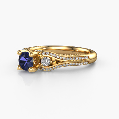 Deze verlovingsring heeft de naam Nikita. Deze ring, uitgevoerd in 14 Carat goud is gezet met 5 mm saffier. Een bijzondere gouden vintage ring, deze unieke verlovingsring die jouw liefde van je leven zeker laat stralen! En dat is precies waar wij voor gaan. In deze vintage verlovingsring is prachtige saffier verwerkt. Je kunt natuurlijk iedere edelsteen die wij aanbieden hierin laten verwerken. De edelsteen is zorgvuldig geselecteerd, want wij vinden dat op jouw smaakvolle verlovingsring alleen de mooiste edelsteen mag schitteren, toch? Onze goudsmid vervaardigt jouw verlovingsring in ons eigen atelier, en plaatst de saffier met uiterste precisie in de ring. Vervolgens wordt deze bijgewerkt en gepolijst totdat het resultaat zichtbaar is: de perfecte verlovingsring voor de liefde van jouw leven! Dit juweel wordt speciaal voor jou gemaakt door onze meester goudsmeden in ons eigen atelier.Onze goudsmeden vervaardigen pas je Nikita verlovingsring, zodra je deze besteld hebt. We hebben geen voorraden. Het voordeel hiervan is dat we de voorraad niet door hoeven te berekenen in de prijs, en kunnen daardoor sieraden leveren tegen een bijzonder lage prijs.Heb je zelf een speciale ring in gedachten, die je wellicht ergens gezien hebt? Je kunt je ideeën altijd met ons bespreken, wij zetten graag jouw ontwerp om tot een unieke verlovingsring. Het ontwerp kun je volgen, omdat wij met 3D tekeningen werken. Hierdoor krijg je al een realistische indruk van hoe jouw ontwerp er in het echt uit komt te zien. Wij sturen je graag een vrijblijvende offerte, waarbij je ongetwijfeld verwonderd zult zijn over de prijs in combinatie met de uitstekende kwaliteit die we aanbieden.Om het voor jou makkelijker te maken kun je ieder besteld sieraad binnen 30 dagen na aflevering eenvoudig weer retour sturen.