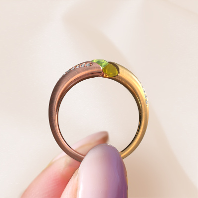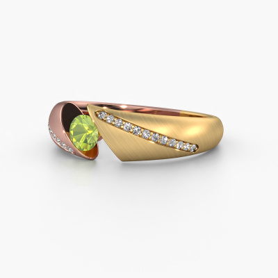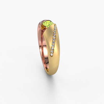 Deze verlovingsring heeft de naam Hojalien 2. Hij is uitgevoerd in 14 Carat rosé goud en gezet met peridoot. Ga jij graag mee met eigentijdse trends? En wil je dit ook terug laten komen in je keuze voor een unieke verlovingsring? Deze gracieuze verlovingsring is een bijzondere ring, die je zelf naar jouw of haar stijl verder kunt aanpassen. In deze moderne rosé gouden verlovingsring is peridoot verwerkt. Deze peridoot zijn speciaal voor deze verlovingsring geselecteerd, om het mooiste effect te creëren. Onze goudsmid vervaardigt jouw verlovingsring in ons eigen atelier, en plaatst de peridoot heel zorgvuldig in de ring. Vervolgens wordt deze bijgewerkt en gepolijst totdat de perfecte verlovingsring is ontstaan, perfect voor de liefde van jouw leven! Dit juweel is gemaakt door een team van gedreven goudsmeden en designers. Hierdoor zal dit unieke pronkstuk een echte eyecatcher zijn.Omdat wij zelf alle verlovingsring maken en direct aan jou leveren kunnen wij je een verlovingsring leveren tegen een prijs die je nergens anders zult tegenkomen. Een ring wordt pas gemaakt als we een bestelling krijgen, hierdoor hebben wij geen dure voorraden en kunnen wij je de beste prijs garanderen. Wij begrijpen dat het kopen van een verlovingsring online spannend is en willen daarom je zoveel mogelijk informeren over alle specifieke eigenschappen van de ring die jij koopt.Ons team is iedere dag weer bezig om nieuwe ontwerpen toe te voegen, in samenwerking met onze designers en goudsmeden wordt gekeken hoe we tot het mooiste ontwerp kunnen komen. Wij doen ons best om tot een zo gevarieerd mogelijk aanbod te komen. Wellicht heb je zelf al een mooi idee van een sieraad dat je ooit wel eens gezien hebt. Neem dan eens vrijblijvend contact met ons op. Wij maken een offerte voor je op waarbij wij vrij zeker zijn dat we wat betreft kwaliteit en prijs jou versteld zullen laten staan.Om het voor jou makkelijker te maken kun je ieder besteld sieraad binnen 30 dagen na aflevering eenvoudig weer retour sturen.
