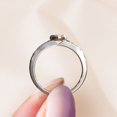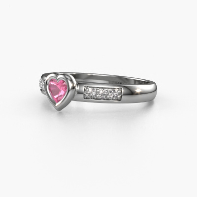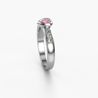 Deze verlovingsring heeft de naam Lieke Heart. Hij is uitgevoerd in 14 Carat witgoud en gezet met roze saffier. Ga jij graag mee met eigentijdse trends? En wil je dit ook terug laten komen in je keuze voor een unieke verlovingsring? Deze hartjes verlovingsring is een bijzondere ring, die je zelf naar jouw of haar stijl verder kunt aanpassen. In deze trendy witgouden verlovingsring is roze saffier verwerkt. Deze roze saffier zijn speciaal voor deze verlovingsring geselecteerd, om het mooiste effect te creëren. Onze goudsmid vervaardigt jouw verlovingsring in ons eigen atelier, en plaatst de roze saffier heel zorgvuldig in de ring. Vervolgens wordt deze bijgewerkt en gepolijst totdat de perfecte verlovingsring is ontstaan, perfect voor de liefde van jouw leven! Dit juweel is uniek, doordat je deze ring geheel naar eigen wensen kunt samenstellen.Wist je dat we een beste prijs garantie geven voor jouw verlovingsring? Dit is mogelijk omdat al onze sieraden met de hand gemaakt worden in ons eigen atelier. We hebben geen dure voorraden, en we maken pas je verlovingsring op het moment dat je besteld hebt. Doordat we de hele productie zelf in de hand hebben, kunnen wij je goed informeren over alle eigenschappen van deze ring. Juist omdat het kopen van een verlovingsring online spannend is, begrijpen wij dat het fijn is om alle kenmerken te weten van jouw ring.Ons team ontwerpt dagelijks nieuwe ringen in diverse stijlen. Heb je zelf een pavé solitaire verlovingsring ergens gezien, die jij het liefst aan jouw geliefde zou willen geven? Je kunt altijd jouw ideeën en ontwerp met onze sieradenontwerpers bespreken, want wij zetten graag jouw ontwerp om tot een trendy verlovingsring. Je kunt tijdens het ontwerpproces steeds meekijken, omdat het ontwerp in een zeer gedetailleerde 3D tekening wordt omgezet. Daarbij kun je een dummy bestellen van het uiteindelijke ontwerp. Een dummy is een kunststof ring, die precies dezelfde vormen heeft als jouw uiteindelijke ontwerp. Je kunt deze passen en zien of de ontworpen verlovingsring helemaal naar jouw wens is. Wij sturen je graag een vrijblijvende offerte, waarbij je ongetwijfeld versteld zult staan over de prijs en de kwaliteit van de ring en edelstenen.Om het voor jou makkelijker te maken kun je ieder besteld sieraad binnen 30 dagen na aflevering eenvoudig weer retour sturen.