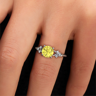 Deze verlovingsring heeft de naam Azra RND. Hij is uitgevoerd in 14 Carat witgoud en gezet met gele lab grown diamant. Ga jij graag mee met eigentijdse trends? En wil je dit ook terug laten komen in je keuze voor een unieke verlovingsring? Deze smaakvolle verlovingsring is een bijzondere ring, die je zelf naar jouw of haar stijl verder kunt aanpassen. In deze fantasie witgouden verlovingsring is gele lab grown diamant verwerkt. Deze gele lab grown diamanten zijn speciaal voor deze verlovingsring geselecteerd, om het mooiste effect te creëren. Onze goudsmid vervaardigt jouw verlovingsring in ons eigen atelier, en plaatst de gele lab grown diamant heel zorgvuldig in de ring. Vervolgens wordt deze bijgewerkt en gepolijst totdat de perfecte verlovingsring is ontstaan, perfect voor de liefde van jouw leven! Dit juweel wordt met passie en liefde gemaakt door één van onze meestergoudsmeden.Door onze modernste technieken kunnen wij met uiterste precisie prachtige sieraden te ontwerpen en voor jou personaliseren in de hoogste juwelierskwaliteit. Tegelijkertijd zijn onze verlovingsringen altijd 30% goedkoper dan bij een andere juwelier. Dit komt doordat alle verlovingsringen pas vervaardigd worden op het moment dat deze besteld wordt en we daardoor geen dure voorraden hoeven te hanteren. Mocht je aan een bepaald budget gebonden zijn, kunnen we je graag adviseren welke combinatie je het beste kunt kiezen.Ons team ontwerpt dagelijks nieuwe ringen in diverse stijlen. Heb je zelf een pavé solitaire verlovingsring ergens gezien, die jij het liefst aan jouw geliefde zou willen geven? Je kunt altijd jouw ideeën en ontwerp met onze sieradenontwerpers bespreken, want wij zetten graag jouw ontwerp om tot een fantasie verlovingsring. Je kunt tijdens het ontwerpproces steeds meekijken, omdat het ontwerp in een zeer gedetailleerde 3D tekening wordt omgezet. Daarbij kun je een dummy bestellen van het uiteindelijke ontwerp. Een dummy is een kunststof ring, die precies dezelfde vormen heeft als jouw uiteindelijke ontwerp. Je kunt deze passen en zien of de ontworpen verlovingsring helemaal naar jouw wens is. Wij sturen je graag een vrijblijvende offerte, waarbij je ongetwijfeld versteld zult staan over de prijs en de kwaliteit van de ring en edelstenen.Om het voor jou makkelijker te maken kun je ieder besteld sieraad binnen 30 dagen na aflevering eenvoudig weer retour sturen.