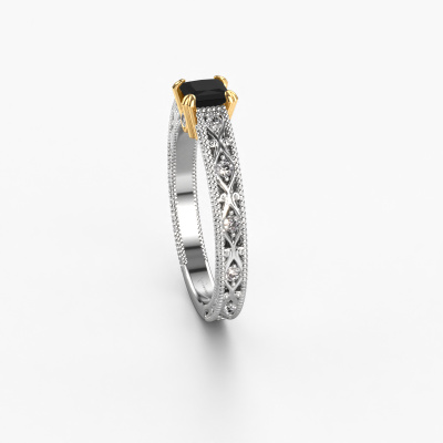 Deze verlovingsring heeft de naam Ardella. Deze ring, uitgevoerd in 14 Carat witgoud is gezet met 0.660 crt zwarte diamant. Een bijzondere witgouden vintage ring, deze unieke verlovingsring die jouw liefde van je leven zeker laat stralen! En dat is precies waar wij voor gaan. In deze vintage verlovingsring is prachtige zwarte diamant verwerkt. Je kunt natuurlijk iedere edelsteen die wij aanbieden hierin laten verwerken. De edelsteen is zorgvuldig geselecteerd, want wij vinden dat op jouw filigraan verlovingsring alleen de mooiste edelsteen mag schitteren, toch? Onze goudsmid vervaardigt jouw verlovingsring in ons eigen atelier, en plaatst de zwarte diamant met uiterste precisie in de ring. Vervolgens wordt deze bijgewerkt en gepolijst totdat het resultaat zichtbaar is: de perfecte verlovingsring voor de liefde van jouw leven! Dit juweel wordt speciaal voor jou gemaakt door onze meester goudsmeden in ons eigen atelier.Wist je dat we een beste prijs garantie geven voor jouw verlovingsring? Dit is mogelijk omdat al onze sieraden met de hand gemaakt worden in ons eigen atelier. We hebben geen dure voorraden, en we maken pas je verlovingsring op het moment dat je besteld hebt. Doordat we de hele productie zelf in de hand hebben, kunnen wij je goed informeren over alle eigenschappen van deze ring. Juist omdat het kopen van een verlovingsring online spannend is, begrijpen wij dat het fijn is om alle kenmerken te weten van jouw ring.Ons team ontwerpt dagelijks nieuwe ringen in diverse stijlen. Heb je zelf een pavé solitaire verlovingsring ergens gezien, die jij het liefst aan jouw geliefde zou willen geven? Je kunt altijd jouw ideeën en ontwerp met onze sieradenontwerpers bespreken, want wij zetten graag jouw ontwerp om tot een vintage verlovingsring. Je kunt tijdens het ontwerpproces steeds meekijken, omdat het ontwerp in een zeer gedetailleerde 3D tekening wordt omgezet. Daarbij kun je een dummy bestellen van het uiteindelijke ontwerp. Een dummy is een kunststof ring, die precies dezelfde vormen heeft als jouw uiteindelijke ontwerp. Je kunt deze passen en zien of de ontworpen verlovingsring helemaal naar jouw wens is. Wij sturen je graag een vrijblijvende offerte, waarbij je ongetwijfeld versteld zult staan over de prijs en de kwaliteit van de ring en edelstenen.Om het voor jou makkelijker te maken kun je ieder besteld sieraad binnen 30 dagen na aflevering eenvoudig weer retour sturen.