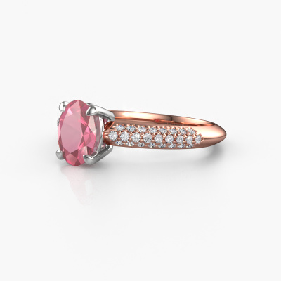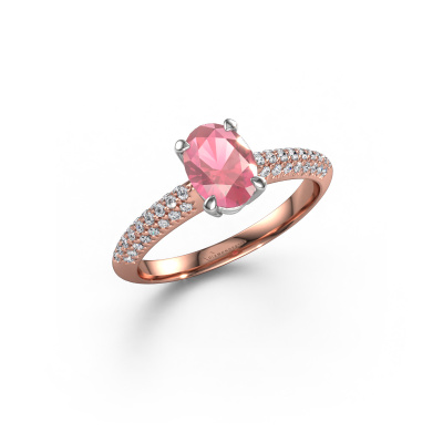 Bovenstaande verlovingsring heeft de naam Morane OVL. Dit type verlovingsring noemen we een Pavé ring. Hierbij worden allemaal kleine edelstenen dicht naast elkaar geplaatst zodat de verlovingsring bijzonder gaat schitteren. Deze verlovingsring uitgevoerd in 14 Carat rosé goud is gezet met toermalijn pink 7,5x5,5 mm. Wat wil jij de liefde van jouw leven vertellen, wanneer je haar je aanzoek doet? Rondom deze rosé gouden verlovingsring zijn prachtige toermalijn pink gezet, als teken van jullie oneindige liefde voor elkaar. De edelstenen worden zorgvuldig uitgekozen en heel precies geplaatst door onze goudsmid. Want alleen wanneer de toermalijn pink precies gelijk naast elkaar worden gezet, kun je de prachtige lichtinval creëren die voor deze verlovingsring zo kenmerkend is. Steeds weer tijdens het ambachtelijk smeden en polijsten houdt de goudsmid jouw verlovingsring in het licht, totdat hij uiteindelijk een perfecte verlovingsring in handen houdt. Door jou samengesteld en speciaal gecreëerd om jouw geliefde te laten stralen! Want er is maar één persoon voor wie deze unieke verlovingsring bedoeld en gemaakt is! Met dit betekenisvolle meesterwerk, het symbool van oneindigheid, vertel je haar dat jouw liefde voor haar oneindig is en dat je de toekomst voor altijd met haar wilt delen. En wat zal haar antwoord daarop zijn? Dit juweel is gemaakt om aan je vinger te stralen, ieder sieraad wordt met liefde door onze goudsmeden met de hand gemaakt.Door onze modernste technieken kunnen wij met uiterste precisie prachtige sieraden te ontwerpen en voor jou personaliseren in de hoogste juwelierskwaliteit. Tegelijkertijd zijn onze verlovingsringen altijd 30% goedkoper dan bij een andere juwelier. Dit komt doordat alle verlovingsringen pas vervaardigd worden op het moment dat deze besteld wordt en we daardoor geen dure voorraden hoeven te hanteren. Mocht je aan een bepaald budget gebonden zijn, kunnen we je graag adviseren welke combinatie je het beste kunt kiezen.Iedere dag is ons team van goudsmeden en sieradenontwerpers aan het werk om nieuwe sieraden te creëren. Het kan zijn dat je ergens een moderne verlovingsring gezien hebt, die je als basis wilt nemen bij het ontwerpen van jouw unieke ring. Neem gerust contact met ons op en we zullen je een aanbod doen, waar je vrijwel zeker verwonderd zult zijn over de kwaliteit en de prijs.Om het voor jou makkelijker te maken kun je ieder besteld sieraad binnen 30 dagen na aflevering eenvoudig weer retour sturen.