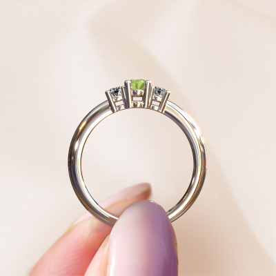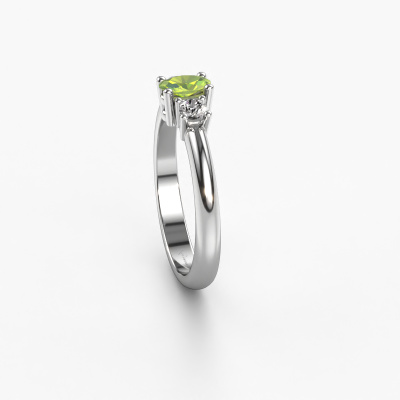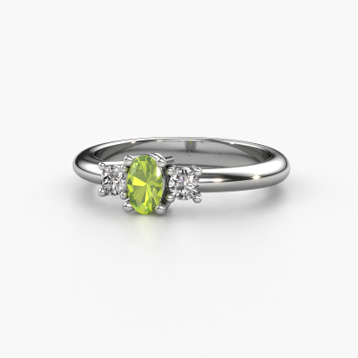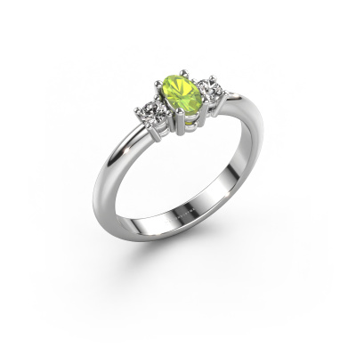 De naam van deze aanzoeksring is de Karie. Hij is gemaakt van 14 Carat witgoud en gezet met 5x3 mm peridoot. Hoe zou je de stijl omschrijven van de liefde van jouw leven? Houdt zij van iets dat net een beetje anders is dan anders? Deze opengewerkte witgouden aanzoeksring is een mooie ring, die je zelf naar jouw of haar smaak verder kunt aanpassen. In deze traditionele aanzoeksring is peridoot verwerkt. Deze peridoot zijn zorgvuldig geselecteerd, want wij vinden dat op jouw aanzoeksring alleen de mooiste edelsteen mag schitteren, toch? Dit juweel wordt speciaal voor jou gemaakt door onze meester goudsmeden in ons eigen atelier.Wist je dat we een beste prijs garantie geven voor jouw aanzoeksring? Dit is mogelijk omdat al onze sieraden met de hand gemaakt worden in ons eigen atelier. We hebben geen dure voorraden, en we maken pas je aanzoeksring op het moment dat je besteld hebt. Doordat we de hele productie zelf in de hand hebben, kunnen wij je goed informeren over alle eigenschappen van deze ring. Juist omdat het kopen van een aanzoeksring online spannend is, begrijpen wij dat het fijn is om alle kenmerken te weten van jouw ring.Heb je zelf een speciale ring in gedachten, die je wellicht ergens gezien hebt? Je kunt je ideeën altijd met ons bespreken, wij zetten graag jouw ontwerp om tot een unieke aanzoeksring. Het ontwerp kun je volgen, omdat wij met 3D tekeningen werken. Hierdoor krijg je al een realistische indruk van hoe jouw ontwerp er in het echt uit komt te zien. Wij sturen je graag een vrijblijvende offerte, waarbij je ongetwijfeld verwonderd zult zijn over de prijs in combinatie met de uitstekende kwaliteit die we aanbieden.Om het voor jou makkelijker te maken kun je ieder besteld sieraad binnen 30 dagen na aflevering eenvoudig weer retour sturen.