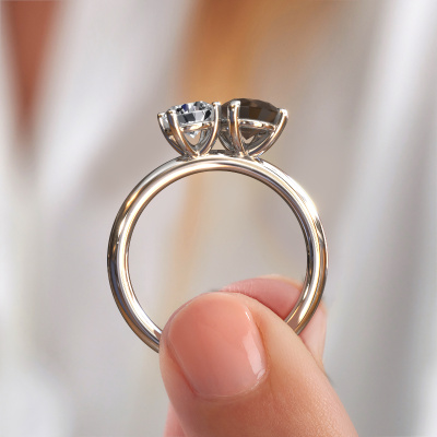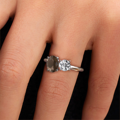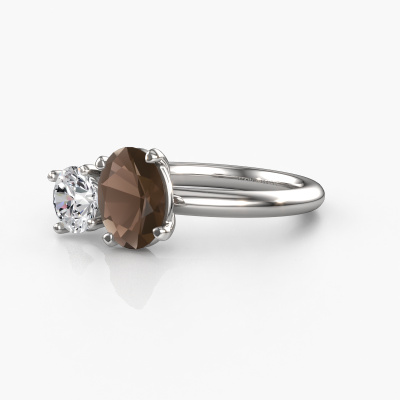 Deze verlovingsring heeft de naam Toi et Moi OVL-RND. Deze ring, uitgevoerd in platina is gezet met rookkwarts. Ben je op zoek naar een unieke platina verlovingsring met een chique uitstraling? Dan is dit een mooie ring, die je zelf naar jouw of