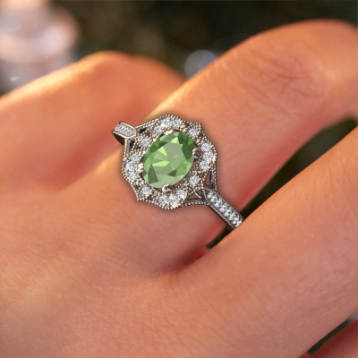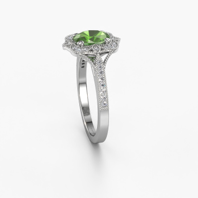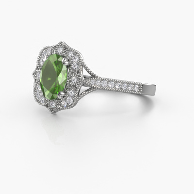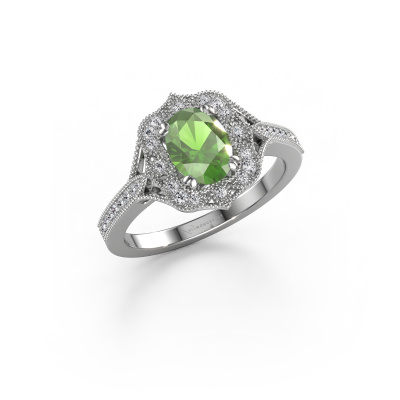 Deze verlovingsring heeft de naam Loni. Deze verlovingsring uitgevoerd in platina is gezet met 7,5x5,5 mm toermalijn groen. Deze filigraan platina verlovingsring is een meesterwerkje op zich. Een prachtig ontwerp van verfijnde draadjes die een uniek geheel vormen. Tegelijkertijd een mooie uitdaging voor onze gepassioneerd goudsmeden! Met veel toewijding, geduld en uiterste precisie vervaardigen zij deze verlovingsring speciaal voor jouw geliefde. Alles wordt met de hand gemaakt, waardoor ieder draadje tot in het kleinste detail perfect bewerkt kan worden. Een lang proces van smeden, bewerken en polijsten, totdat de meestersmid de verlovingsring in het licht houdt en tevreden is... een perfecte verlovingsring waar hij echt trots op is. Daarom is deze vintage filigraan verlovingsring ook een bijzondere verlovingsring om te schenken aan de liefde van je leven! Die ene persoon ga jij binnenkort vragen, en alleen voor deze persoon is deze unieke verlovingsring voor vervaardigd! Prachtig toch? Dit juweel wordt met passie en liefde gemaakt door één van onze meestergoudsmeden.Omdat wij zelf alle verlovingsring maken en direct aan jou leveren kunnen wij je een verlovingsring leveren tegen een prijs die je nergens anders zult tegenkomen. Een ring wordt pas gemaakt als we een bestelling krijgen, hierdoor hebben wij geen dure voorraden en kunnen wij je de beste prijs garanderen. Wij begrijpen dat het kopen van een verlovingsring online spannend is en willen daarom je zoveel mogelijk informeren over alle specifieke eigenschappen van de ring die jij koopt.Ons team is iedere dag weer bezig om nieuwe ontwerpen toe te voegen, in samenwerking met onze designers en goudsmeden wordt gekeken hoe we tot het mooiste ontwerp kunnen komen. Wij doen ons best om tot een zo gevarieerd mogelijk aanbod te komen. Wellicht heb je zelf al een mooi idee van een sieraad dat je ooit wel eens gezien hebt. Neem dan eens vrijblijvend contact met ons op. Wij maken een offerte voor je op waarbij wij vrij zeker zijn dat we wat betreft kwaliteit en prijs jou versteld zullen laten staan.Om het voor jou makkelijker te maken kun je ieder besteld sieraad binnen 30 dagen na aflevering eenvoudig weer retour sturen.