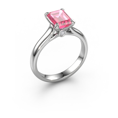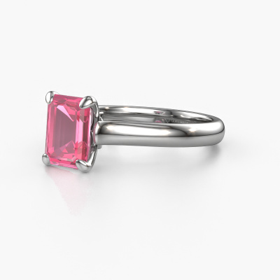 De naam van deze verlovingsring is de Valorie eme 1. Hij is gemaakt van platina en gezet met 9x7 mm roze saffier. Houdt je vriendin van accessoires met een exclusieve uitstraling? Of wil jij haar graag laten zien dat zij alleen het mooiste juweel verdient? In deze platina verlovingsring smelten ambachtelijk vakmanschap, liefde en passie samen met de modernste technieken. Het vraagt een geoefend oog, geduld en een vaardige hand om deze verlovingsring tot in de kleinste details perfect samen te stellen. Maar daar gaan onze goudsmeden dan ook absoluut voor! De zetting van deze zorgvuldig geselecteerde roze saffier geeft de platina geraffineerde verlovingsring extra allure. De stijl kun je verder aanpassen naar de smaak van jouw vriendin, door een keuze uit diverse edelmetalen en edelstenen. Op die manier creëer jij een unieke verlovingsring voor de meest exclusieve vrouw in jouw leven! Dit juweel is speciaal voor jou gemaakt, met aandacht voor detail en design.Door onze modernste technieken kunnen wij met uiterste precisie prachtige sieraden te ontwerpen en voor jou personaliseren in de hoogste juwelierskwaliteit. Tegelijkertijd zijn onze verlovingsringen altijd 30% goedkoper dan bij een andere juwelier. Dit komt doordat alle verlovingsringen pas vervaardigd worden op het moment dat deze besteld wordt en we daardoor geen dure voorraden hoeven te hanteren. Mocht je aan een bepaald budget gebonden zijn, kunnen we je graag adviseren welke combinatie je het beste kunt kiezen.Ons team ontwerpt dagelijks nieuwe ringen in diverse stijlen. Heb je zelf een solitaire verlovingsring ergens gezien, die jij het liefst aan jouw geliefde zou willen geven? Je kunt altijd jouw ideeën en ontwerp met onze sieradenontwerpers bespreken, want wij zetten graag jouw ontwerp om tot een exclusieve verlovingsring. Je kunt tijdens het ontwerpproces steeds meekijken, omdat het ontwerp in een zeer gedetailleerde 3D tekening wordt omgezet. Daarbij kun je een dummy bestellen van het uiteindelijke ontwerp. Een dummy is een kunststof ring, die precies dezelfde vormen heeft als jouw uiteindelijke ontwerp. Je kunt deze passen en zien of de ontworpen verlovingsring helemaal naar jouw wens is. Wij sturen je graag een vrijblijvende offerte, waarbij je ongetwijfeld versteld zult staan over de prijs en de kwaliteit van de ring en edelstenen.Om het voor jou makkelijker te maken kun je ieder besteld sieraad binnen 30 dagen na aflevering eenvoudig weer retour sturen.